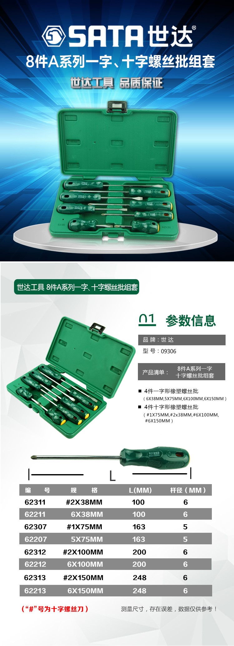 ·产品名称:世达 / Sata 8件套A系列一字、十字螺丝批 09306 1D1753