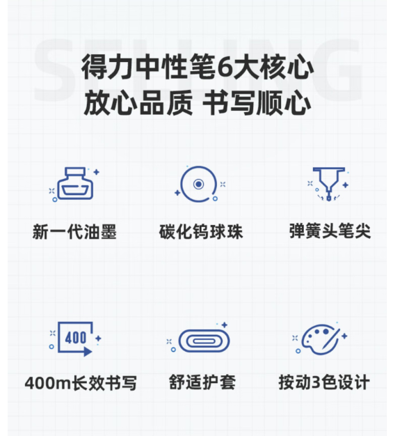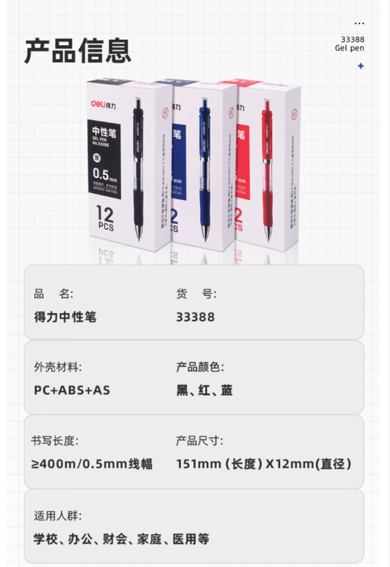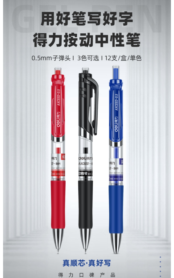 得力S01中性笔0.5mm弹簧头(黑)(6盒,72支)