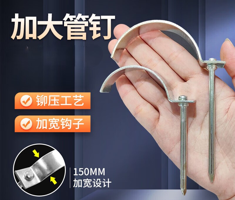 不锈钢钩钉管码管卡钉水管线管固定一寸镀锌铁勾钉PVC管卡扣通用