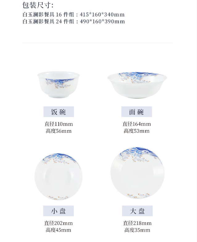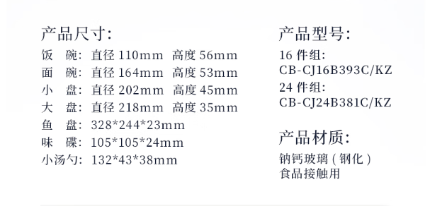 康宁餐具CB-CJ16B393C/KZ 白玉澜影餐具16件组