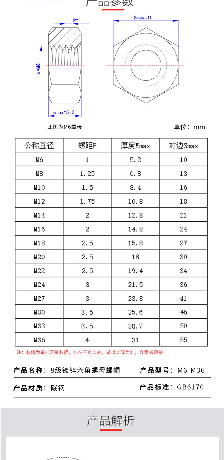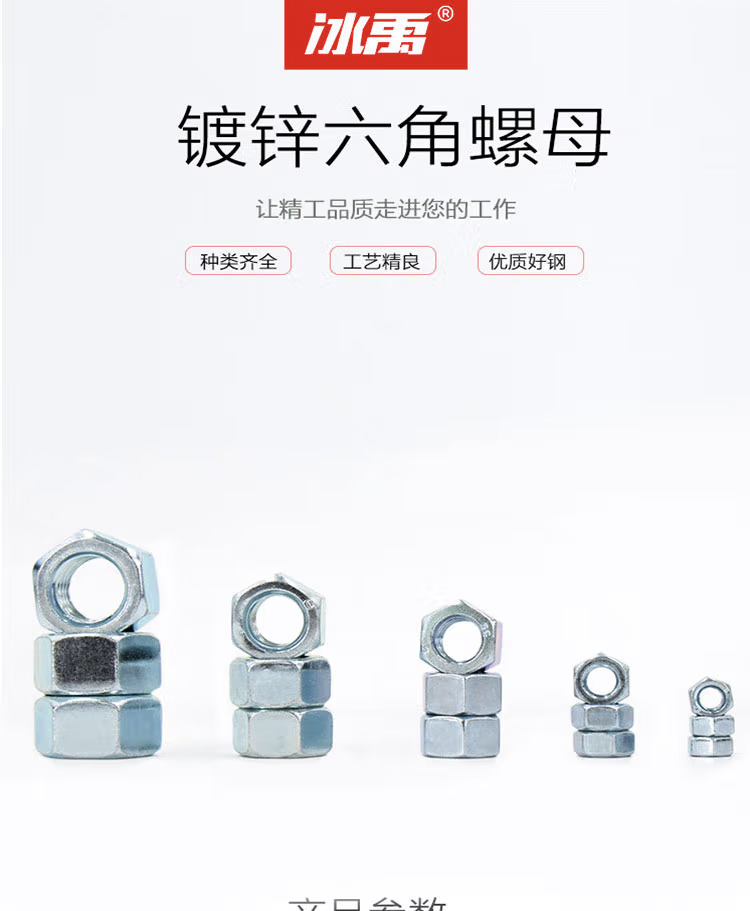 冰禹 8级高强度镀锌六角螺母 GB6170外六角螺帽 M6(250个)