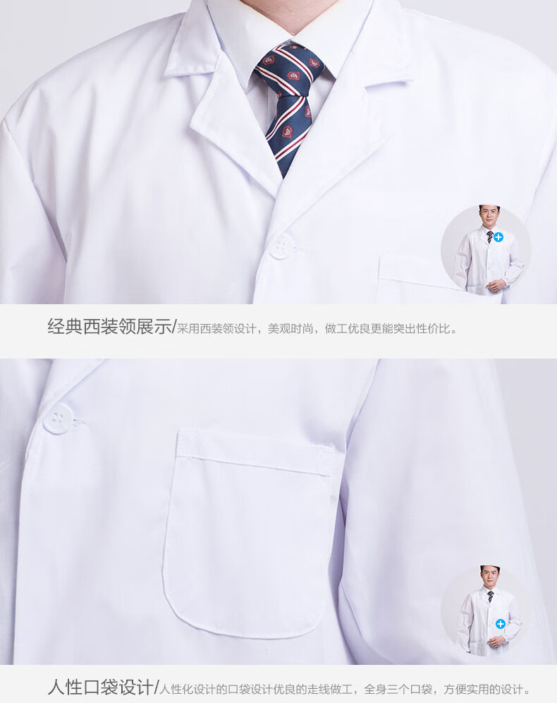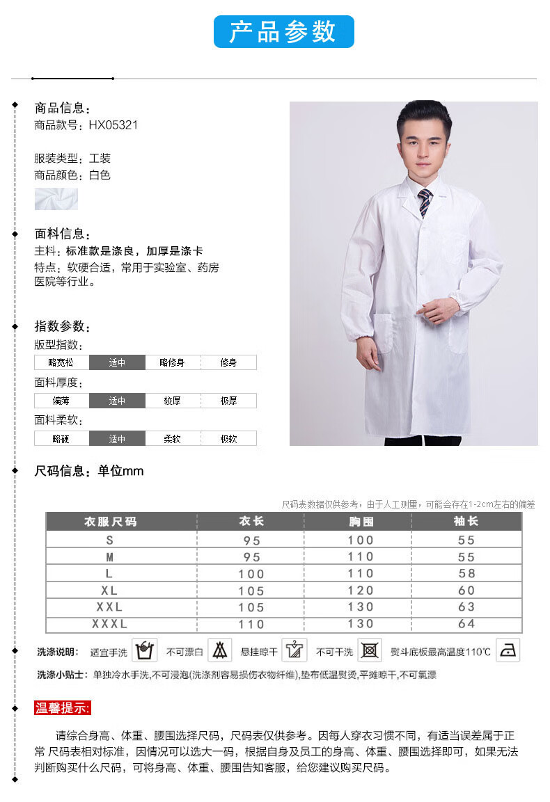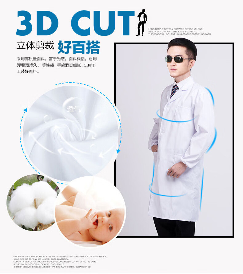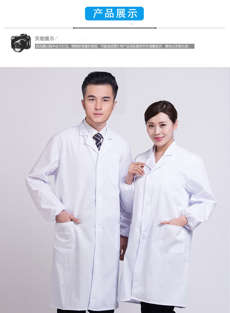 谋福 长袖白大褂 男女学生实验室食品卫生工作服【厚款2XL号180码 】