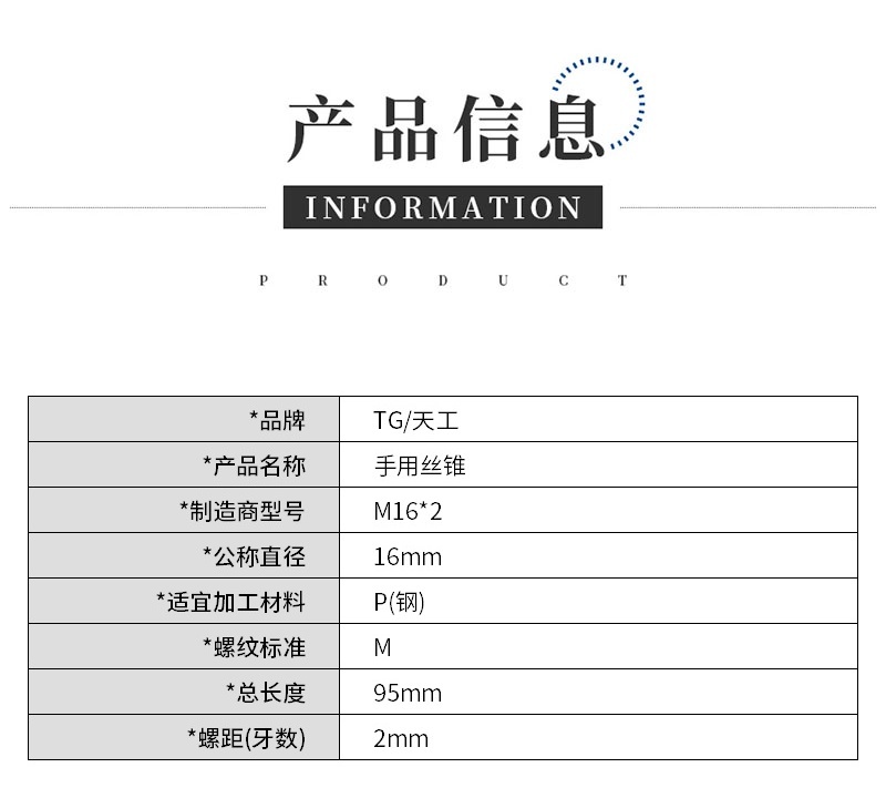 >TG/天工 手用丝锥 M16*2 1副