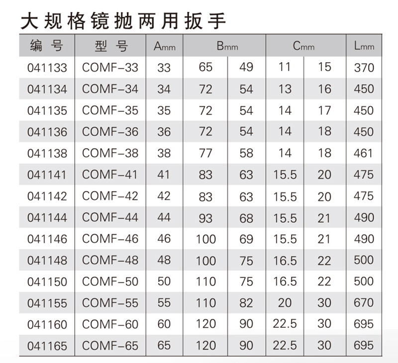 ·镜抛扳手采用碳钢锻造,采用薄形设计,适合在狭小空间使用 ·表面经过多道抛光和研磨程序 ·产品执行标准:GB/T4388~4393-2008