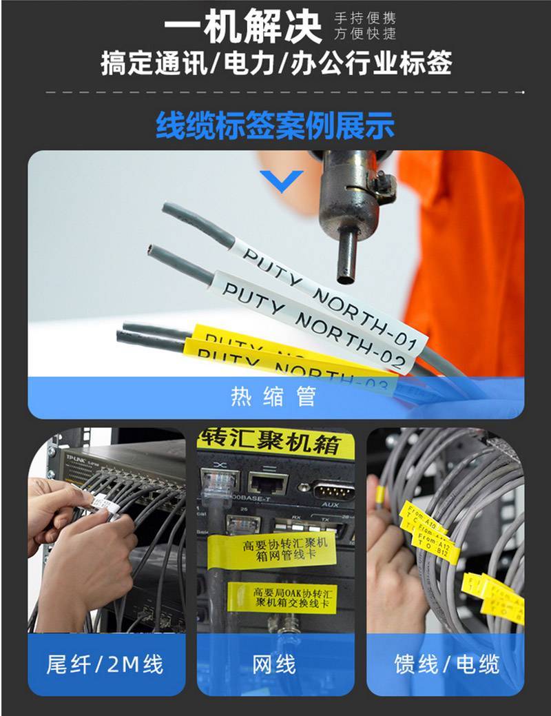 >PUTY/普贴 标签打印机 PT-110EC 适用6~12mm宽色带 打印精度180DPI 打印速度15mm/s 含色带1+锂电池1+电源1 1台