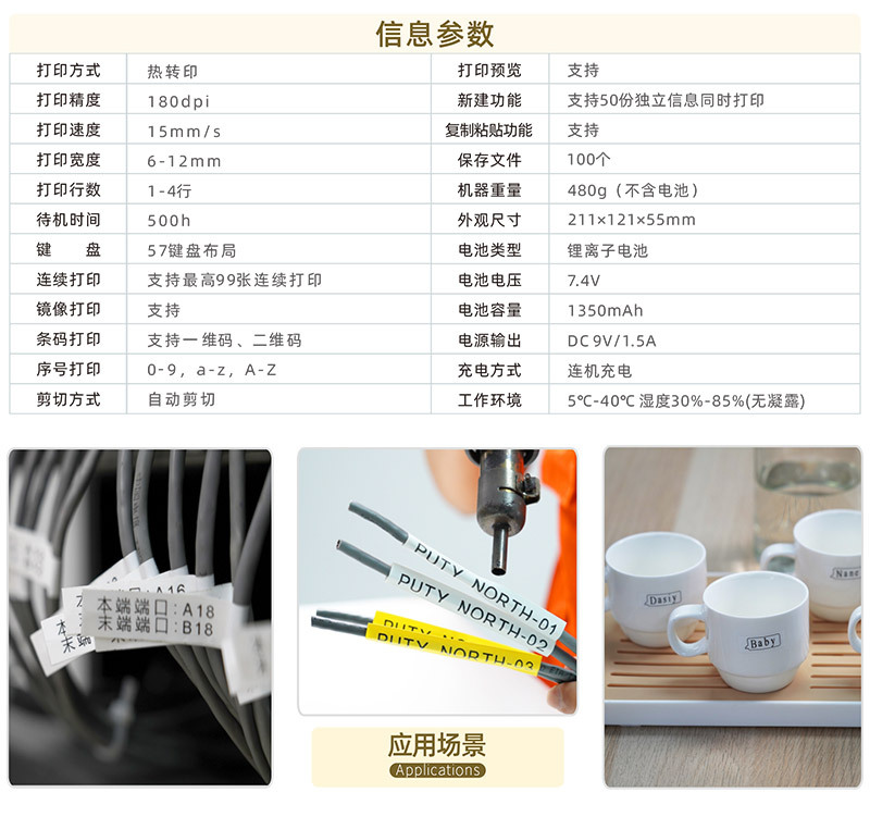 6~12mm180DPI15mm/s6~12mmPUTY/普贴PT-110EC标签打印机