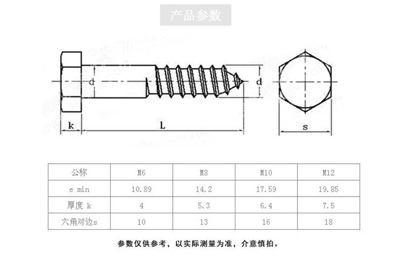DIN571 六角木螺钉 碳钢 镀锌 全牙