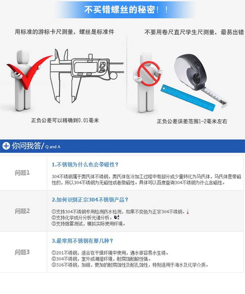·优质不锈钢,耐腐防锈,光滑无毛刺,螺纹完整