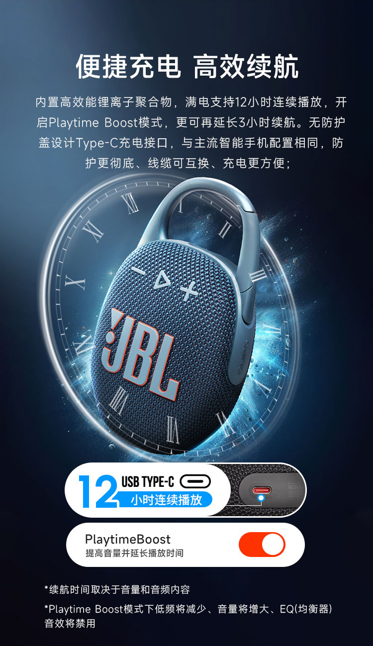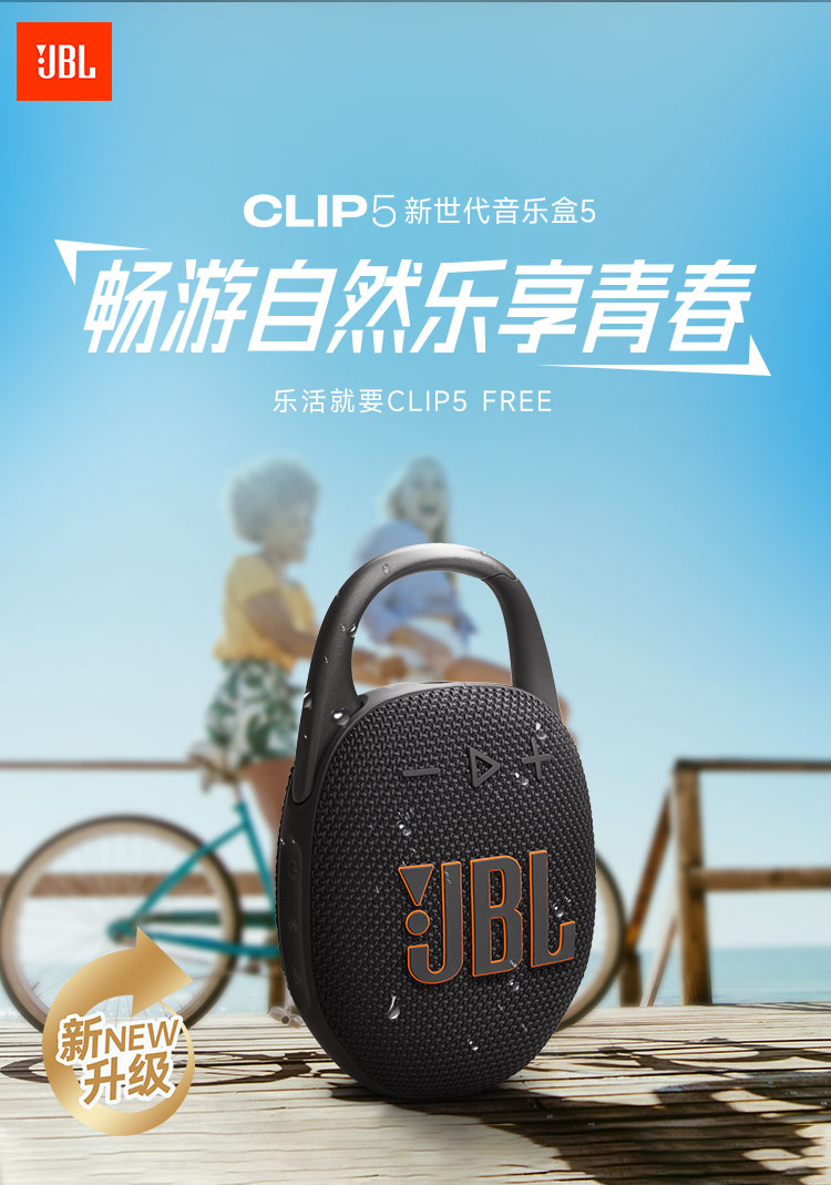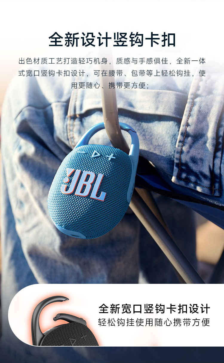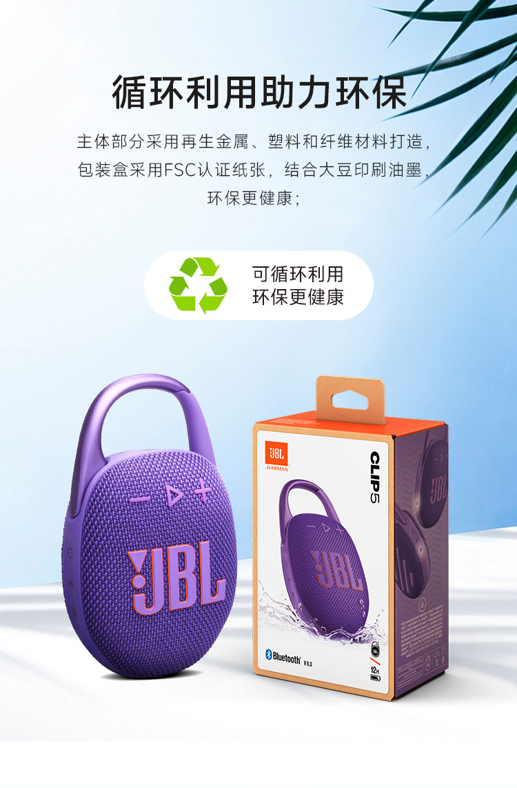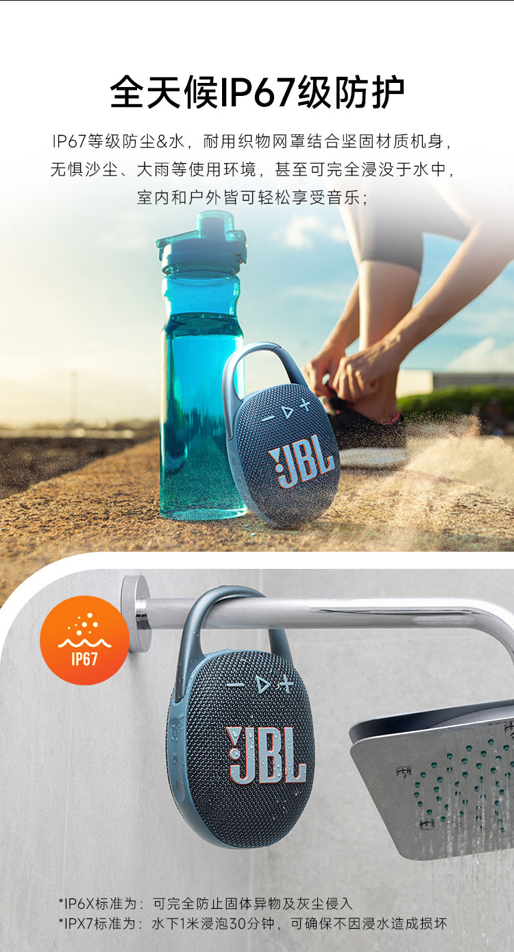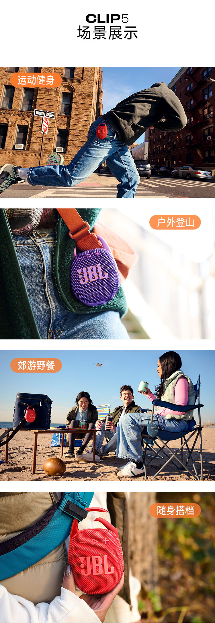 JBLCLIP5音乐盒五代户外便携式防水蓝牙音箱娱乐音响 黑色 (单位:台)