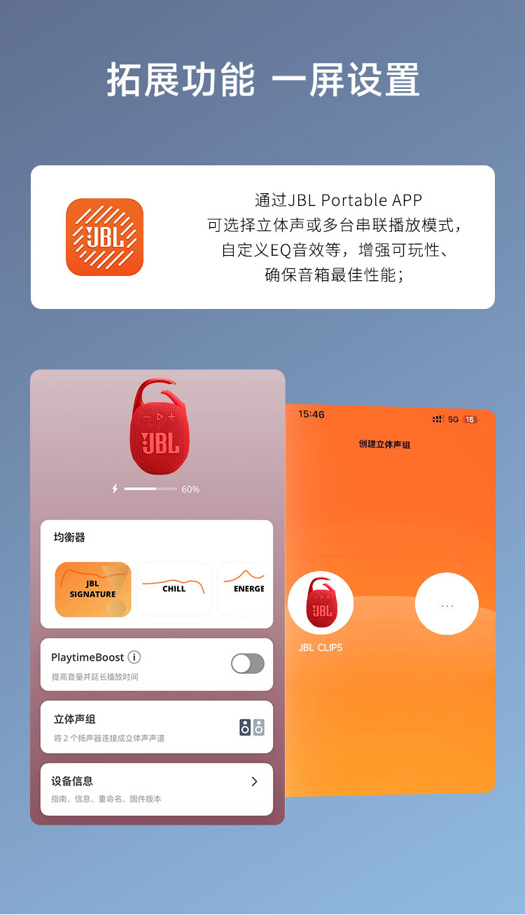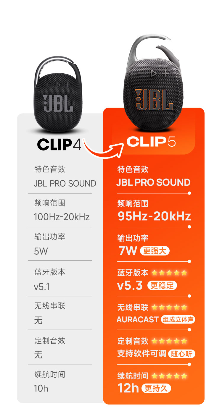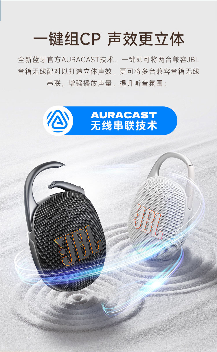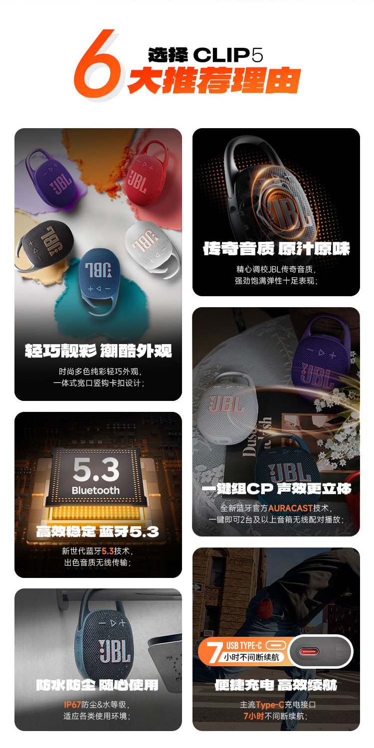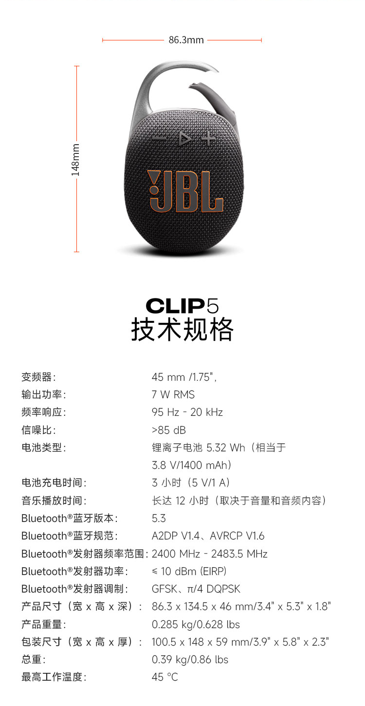 JBLCLIP5音乐盒五代户外便携式防水蓝牙音箱娱乐音响 黑色 (单位:台)