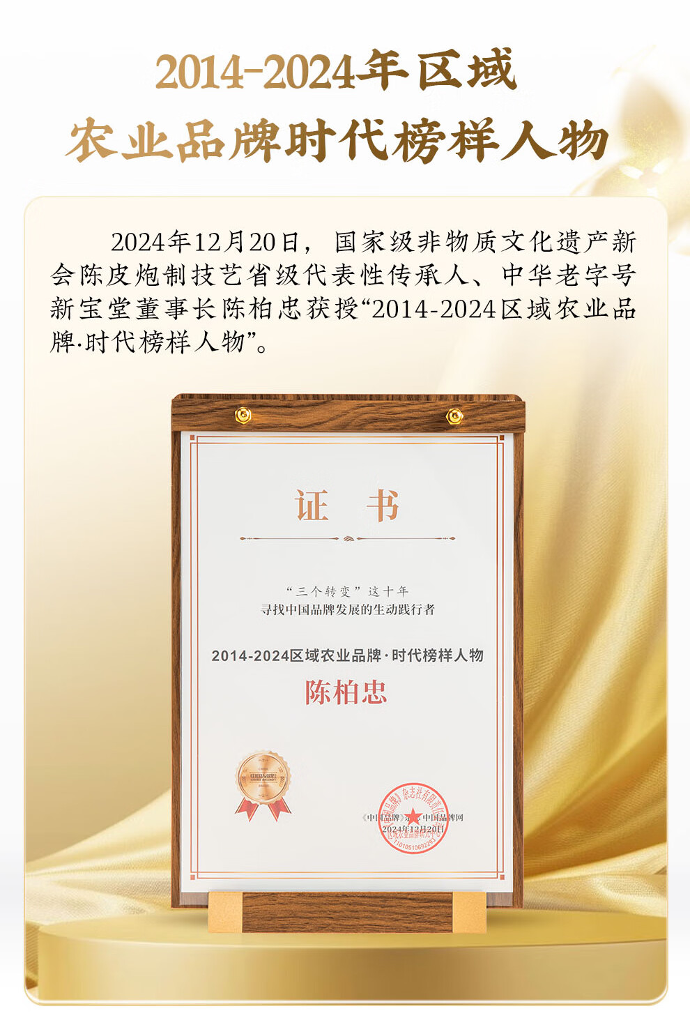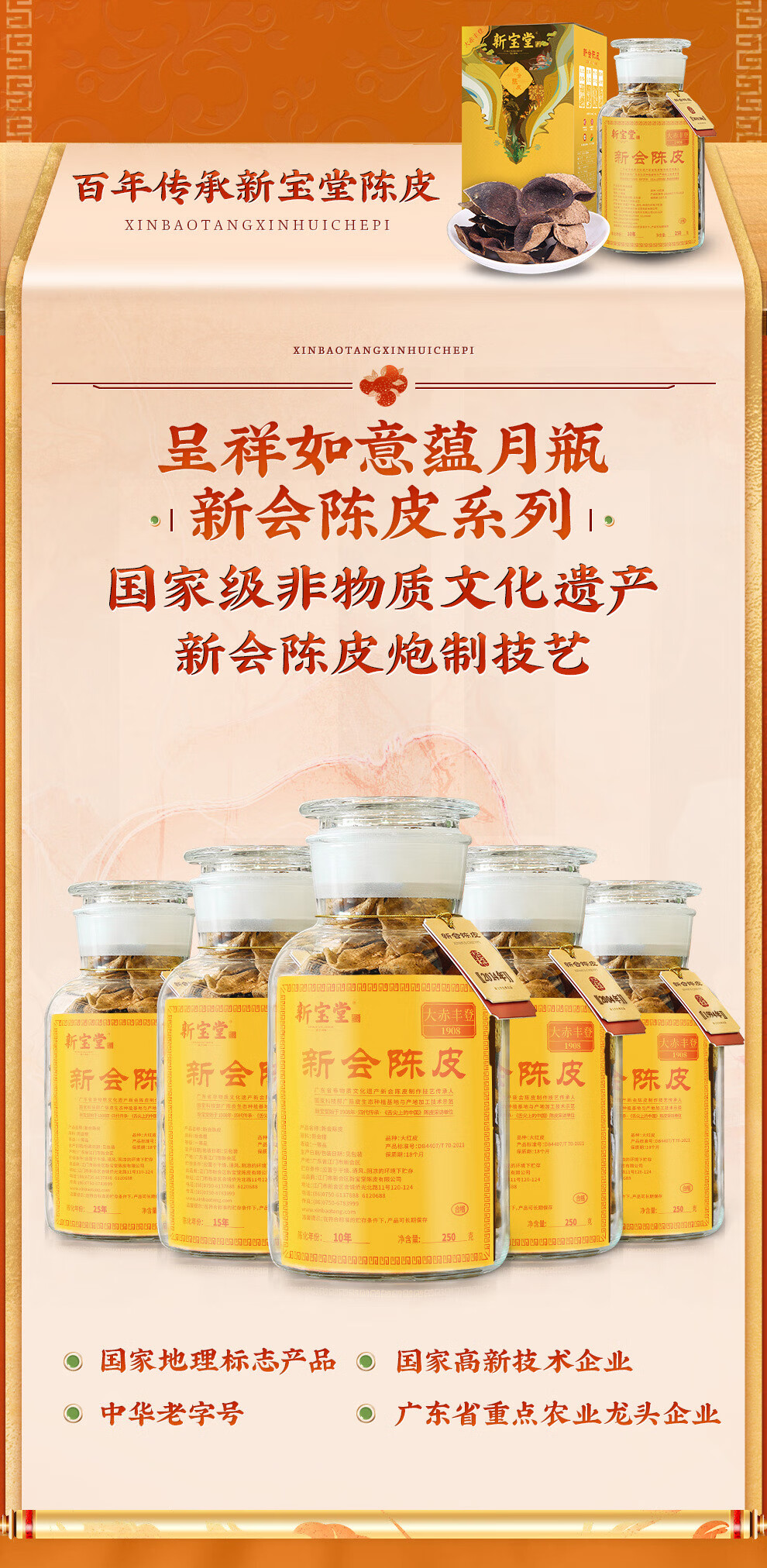 新宝堂 15年新会陈皮大赤丰登藴月瓶礼盒250g