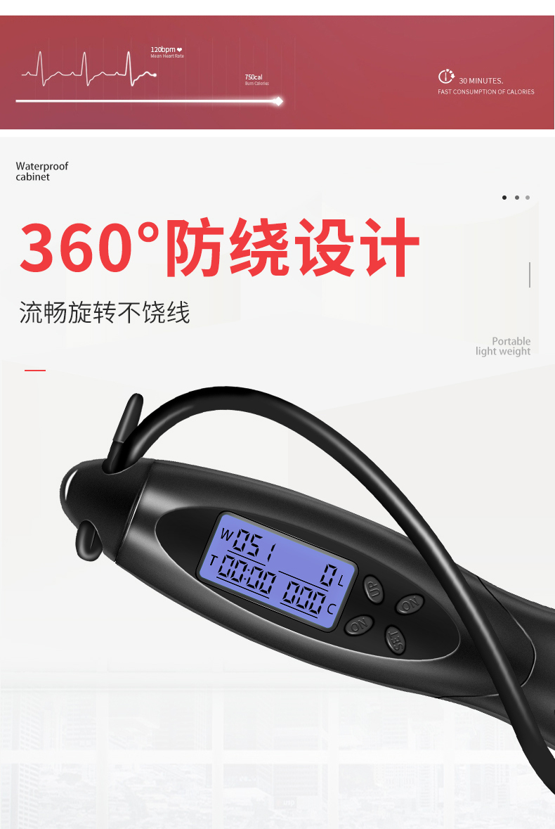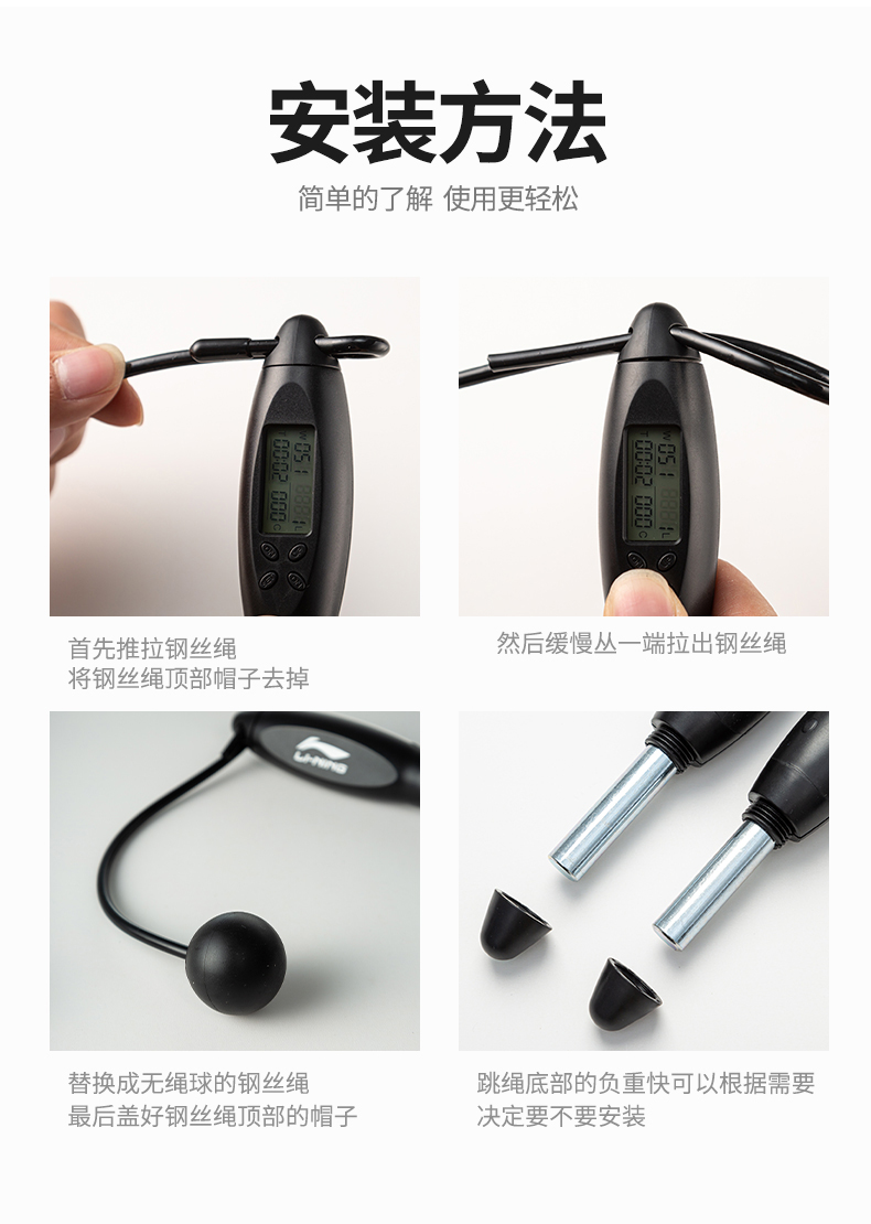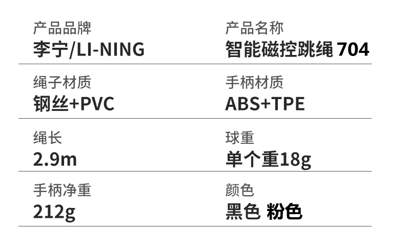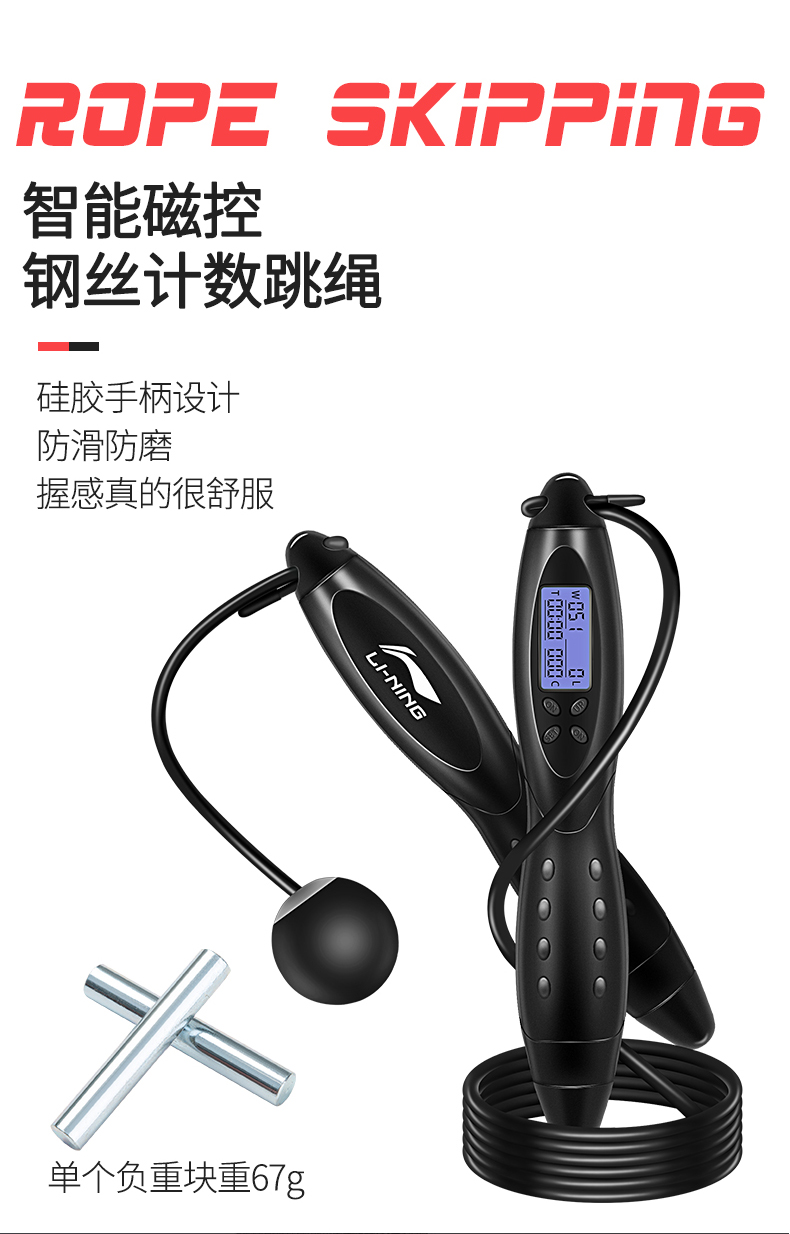 李宁(LI-NING) 磁控智能跳绳 -LBDM703 黑色