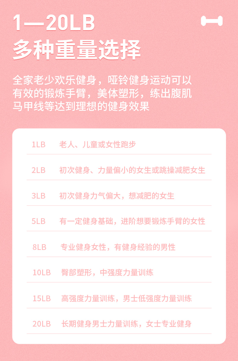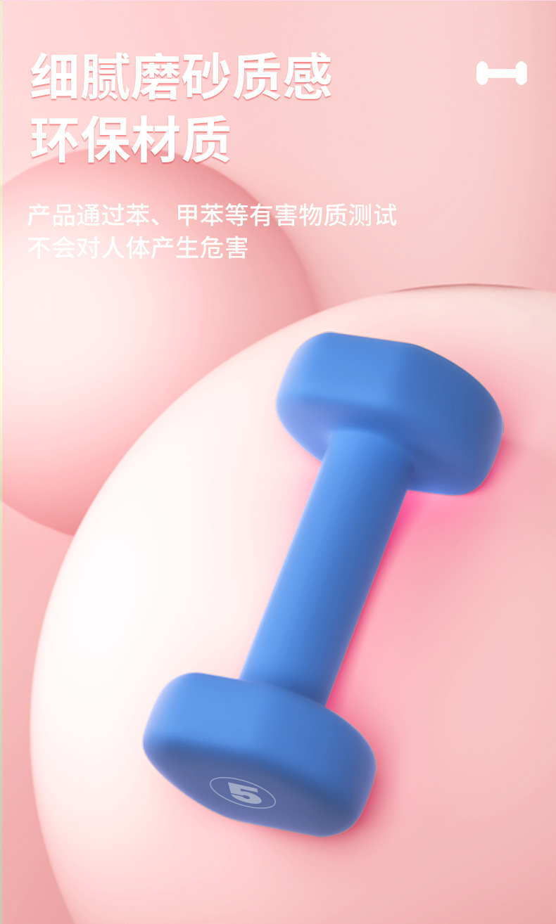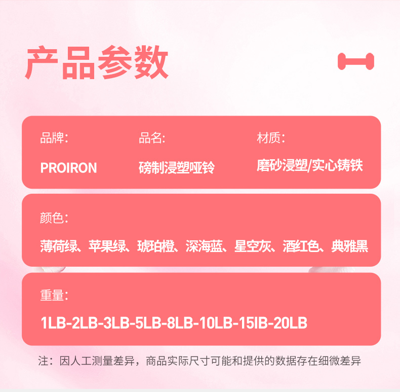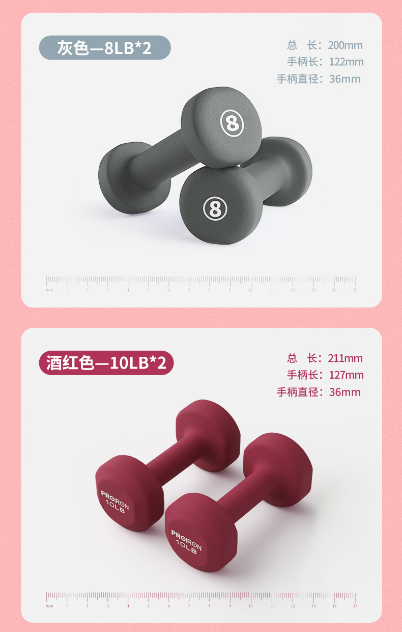 普力艾(PROIRON) 磅制浸塑哑铃酒红色10磅一对装