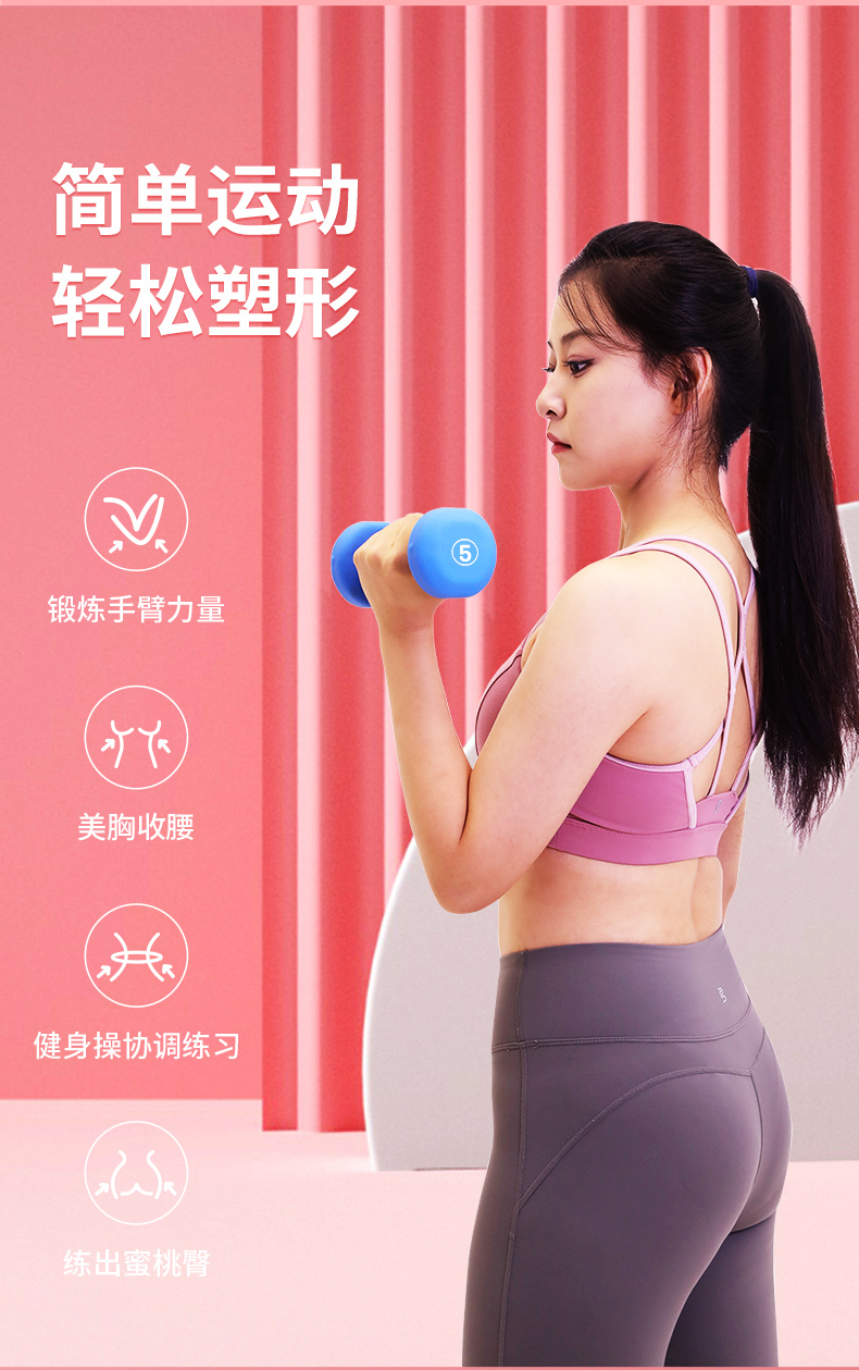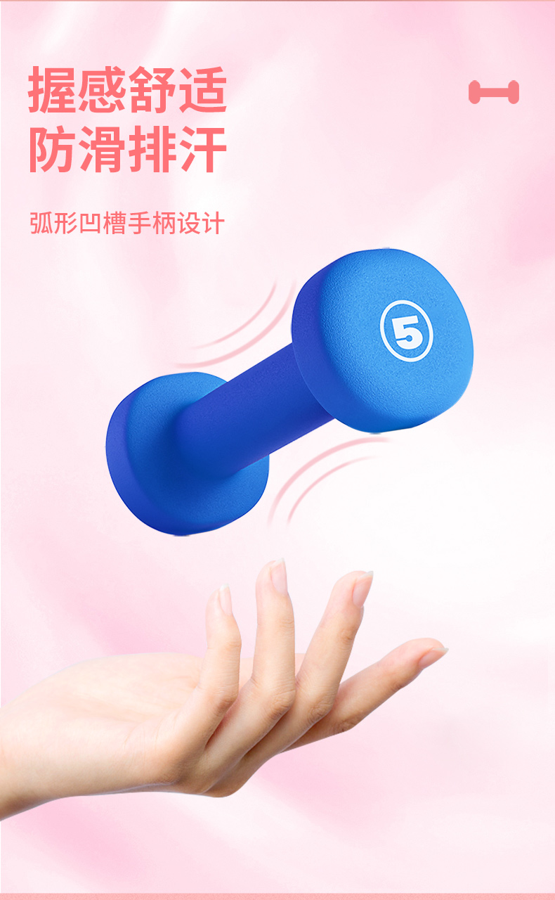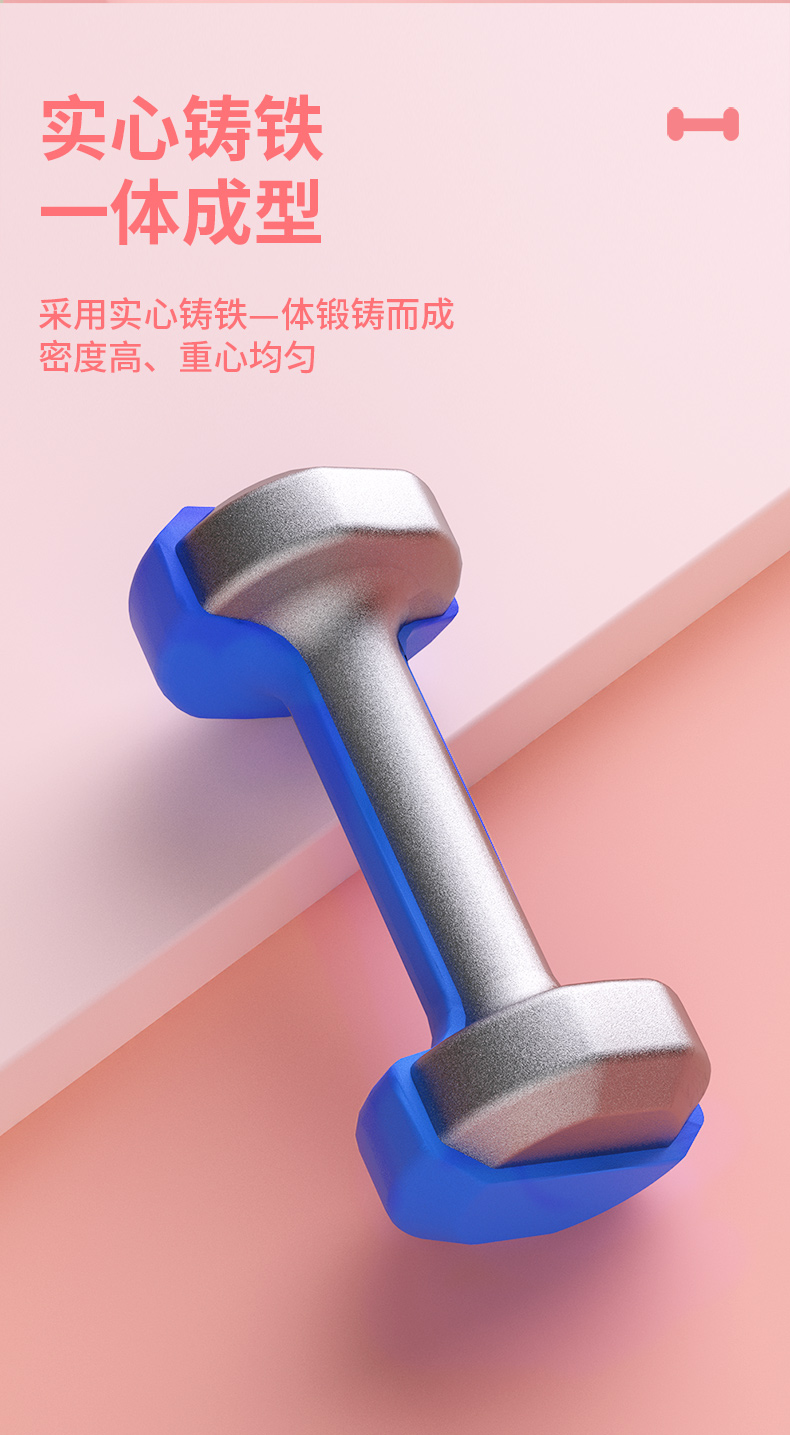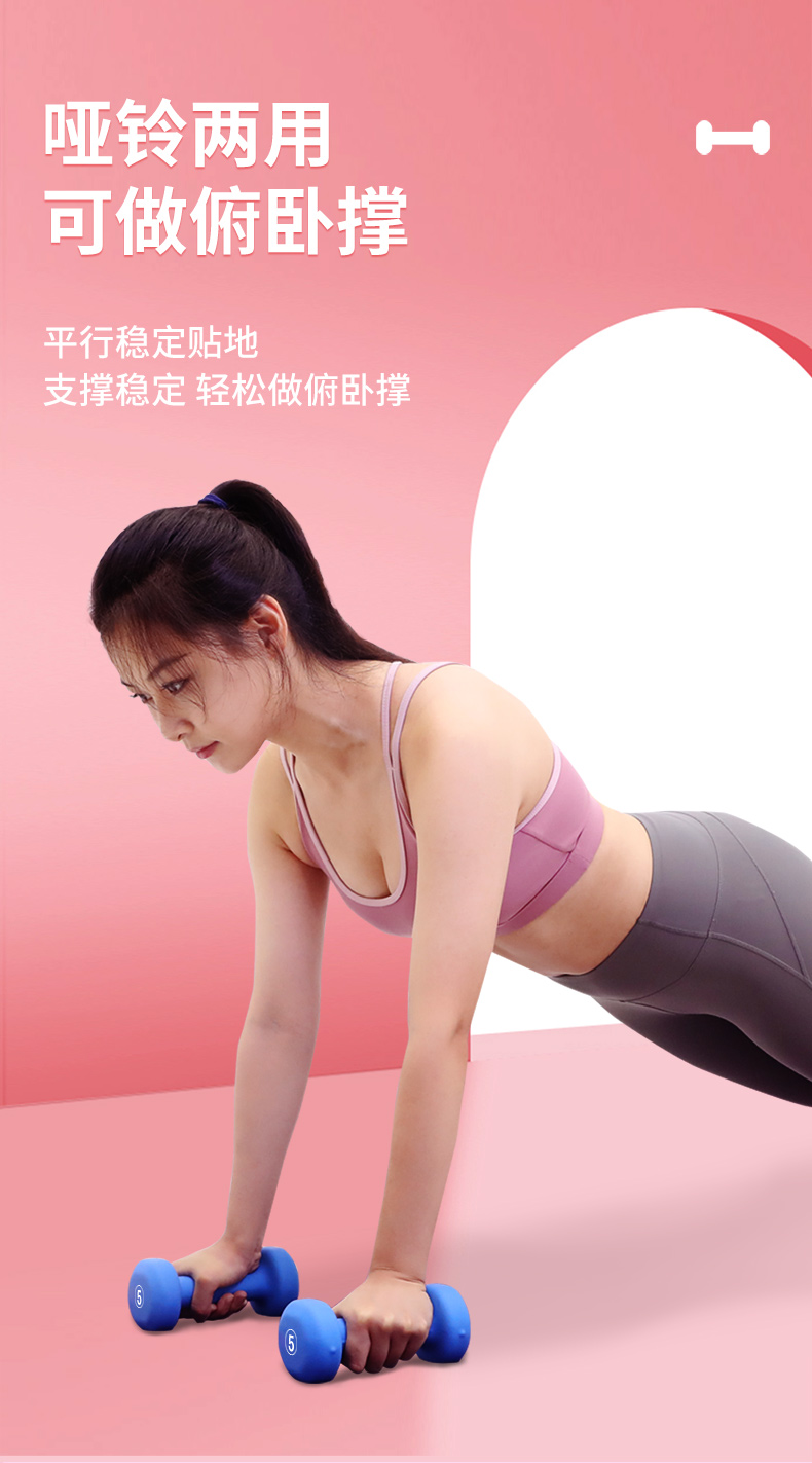 普力艾(PROIRON) 磅制浸塑哑铃酒红色10磅一对装