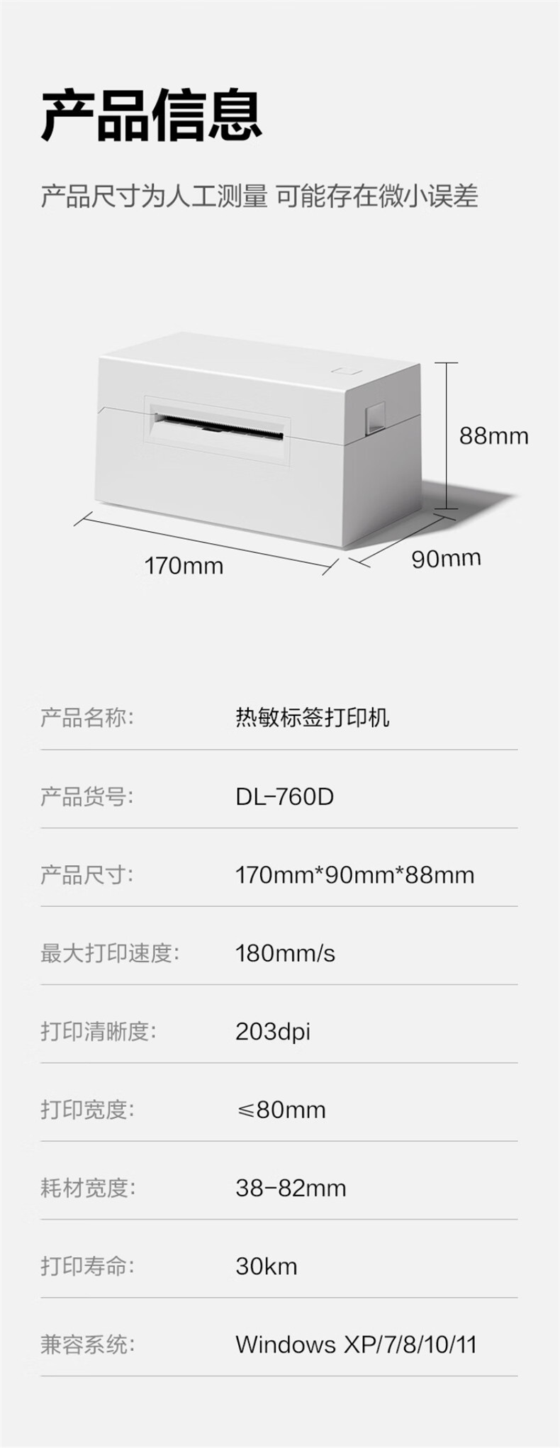 得力(deli)DL-760D热敏标签打印机(白)(单位:台)