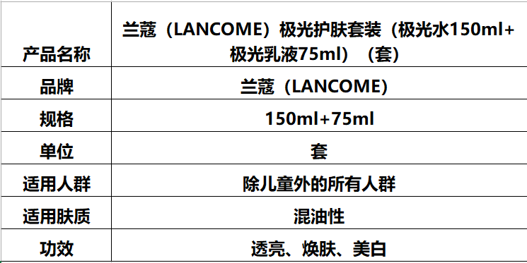 兰蔻(LANCOME)极光护肤套装(极光水150ml+极光乳液75ml)(套)