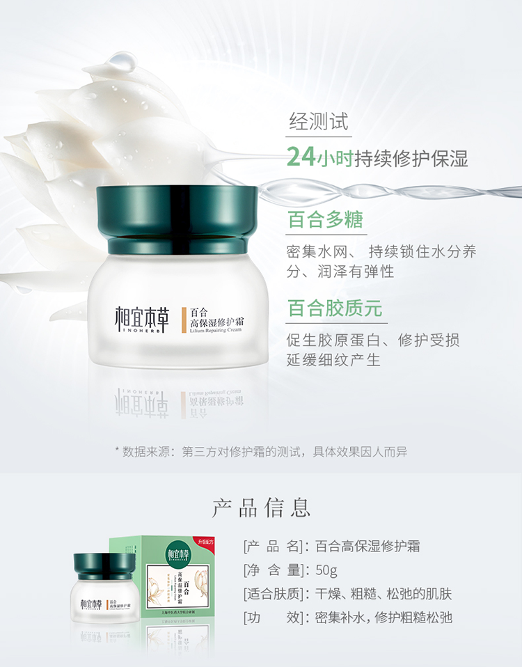 相宜本草(INOHERB) 百合高保湿修护霜50g(瓶)