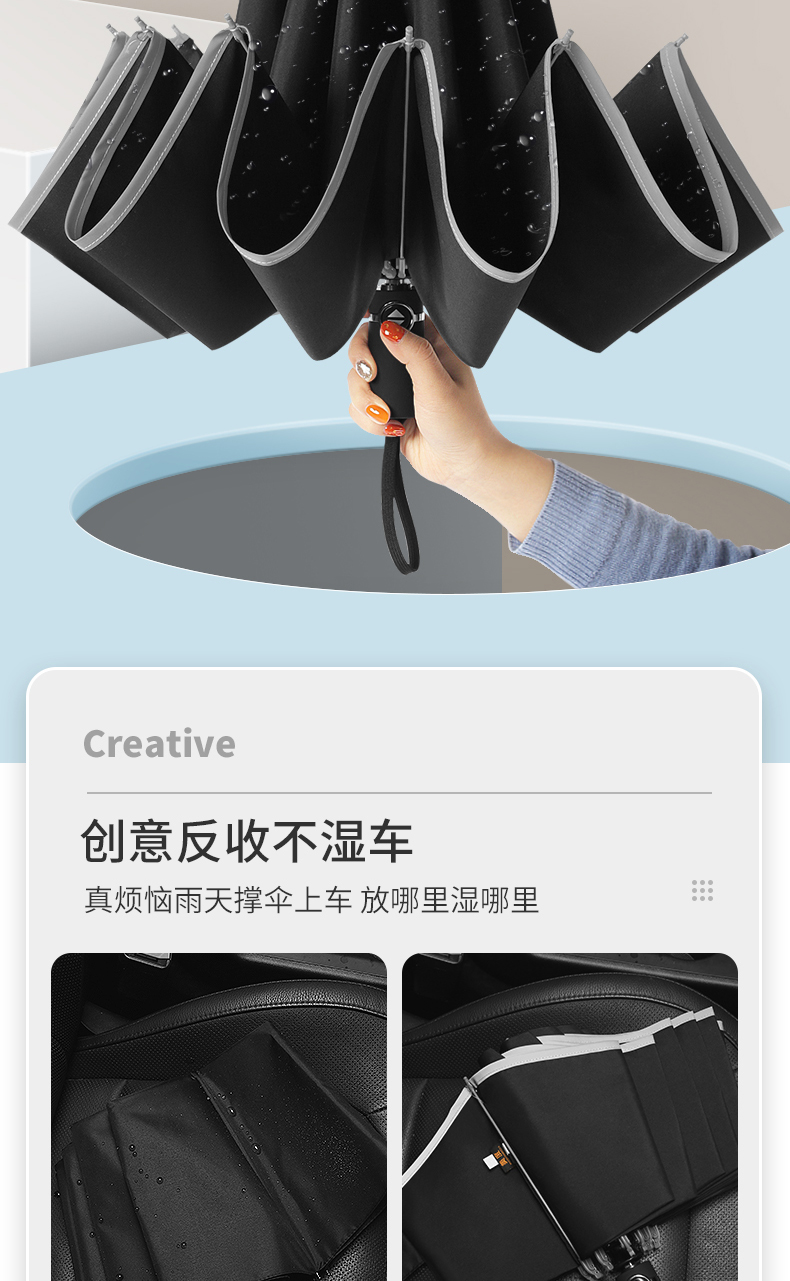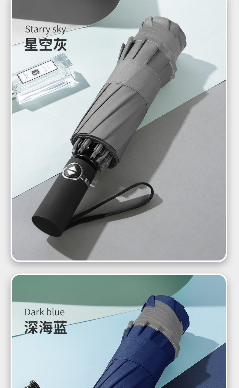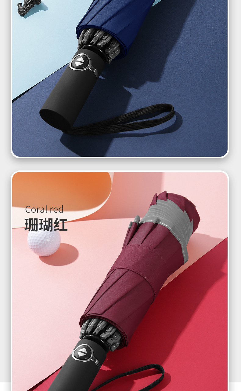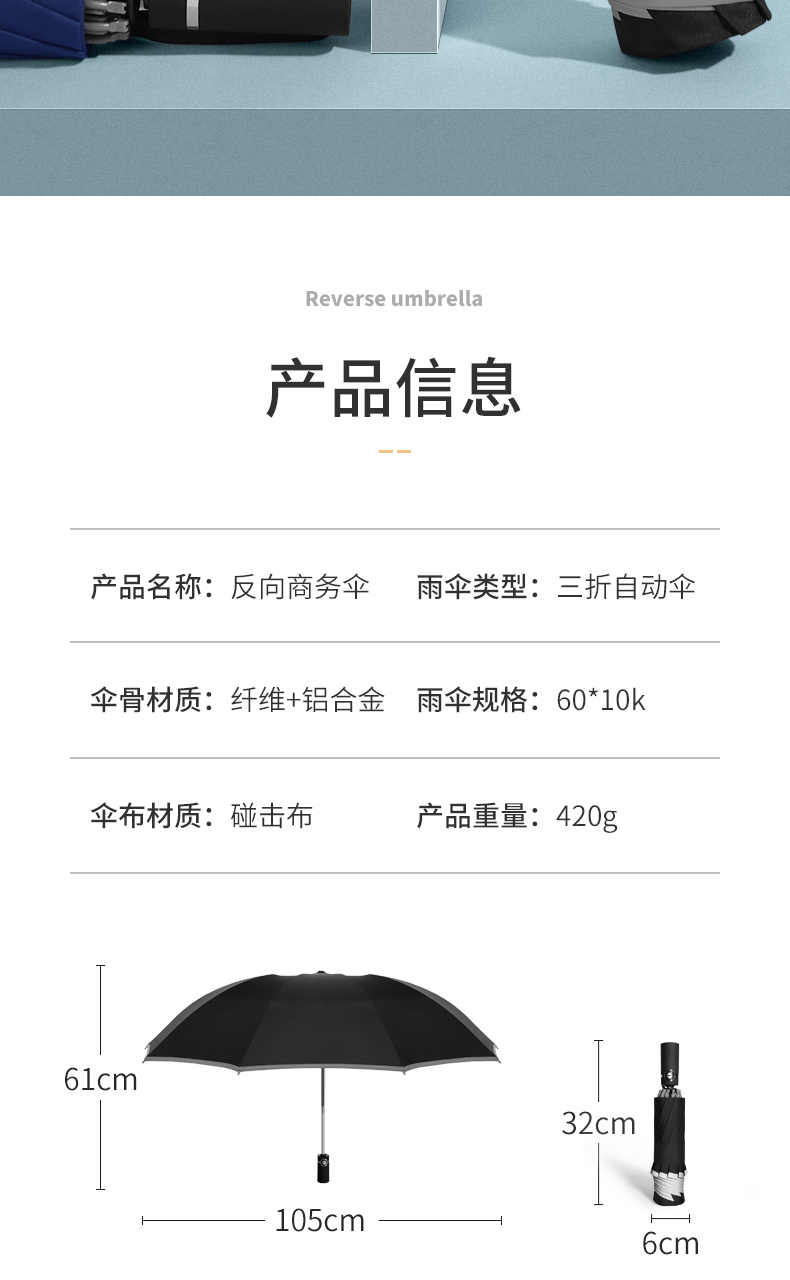 美度M3372三折反向碰击布自动伞58.5cm*10k/105cm蓝(单位:把)