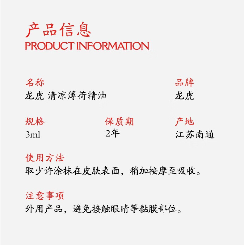 龙虎清凉薄荷精油(风油精)3ml/瓶 100瓶装