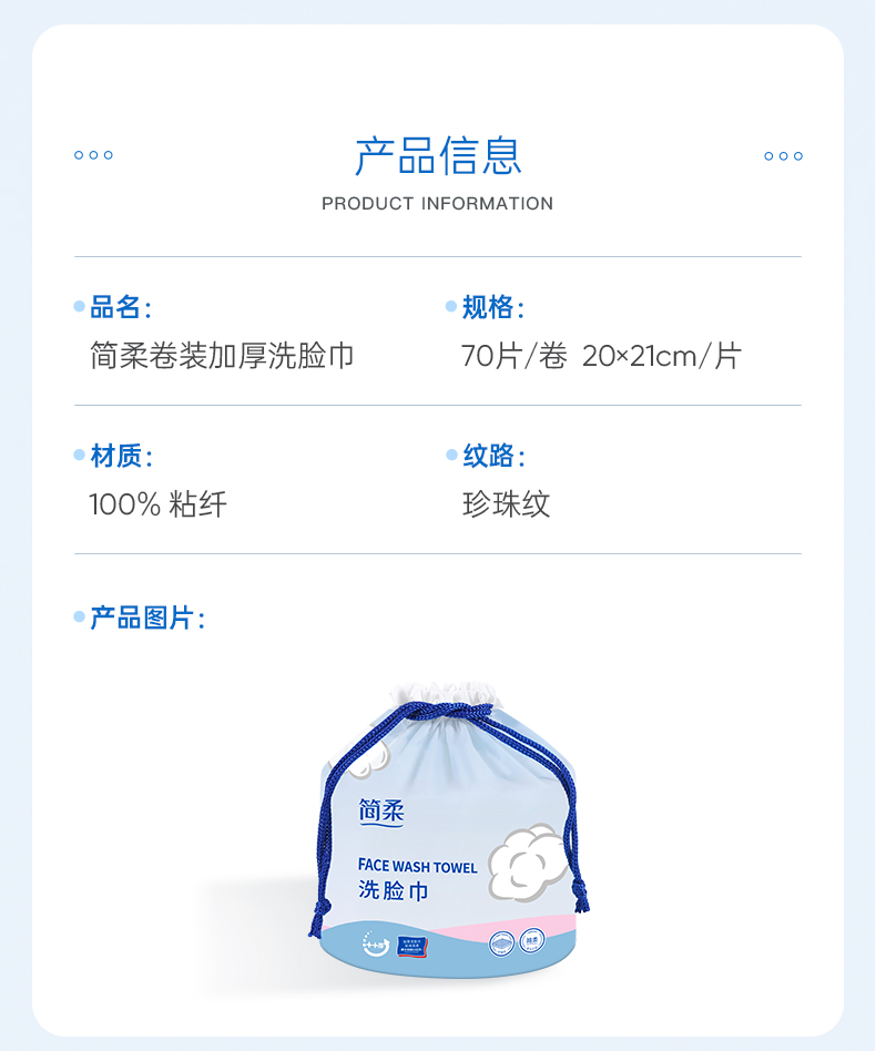 简柔(JIANROU) 卷装纯棉珍珠纹洗脸巾70段*1卷