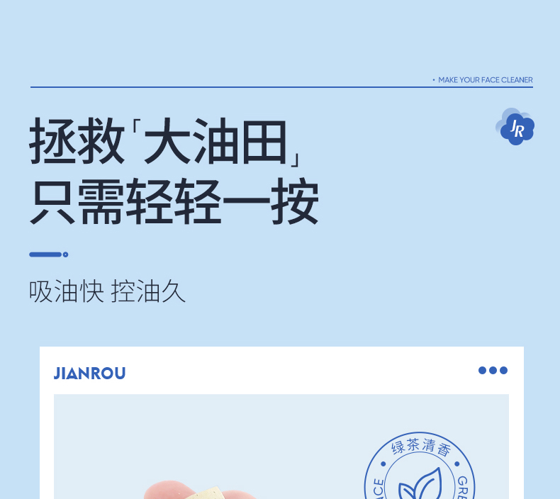 简柔(JIANROU) 绿茶清爽控油吸油纸100片*3盒