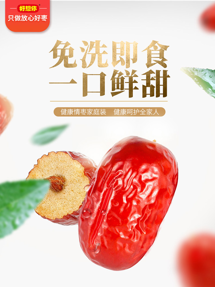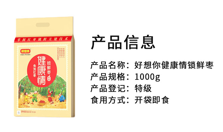 好想你枣制品免洗即食一口鲜甜特级锁鲜枣健康情1000g*1袋(包装随机)