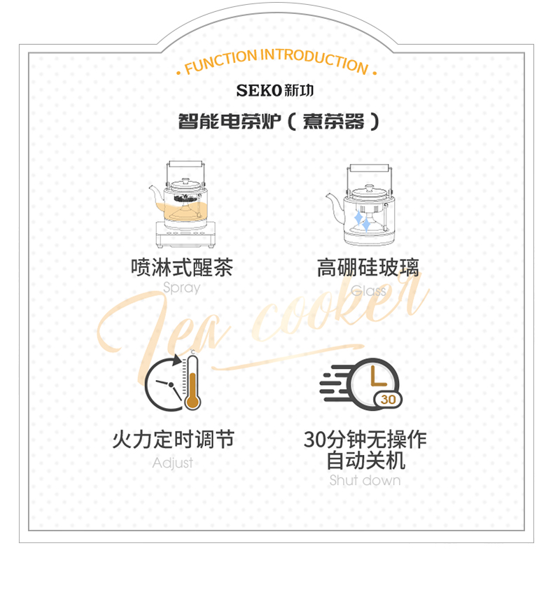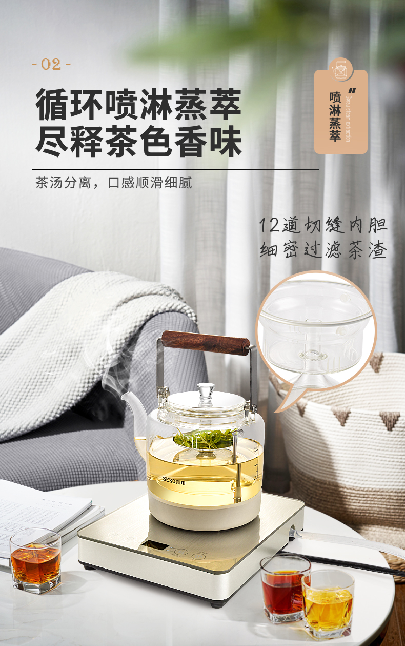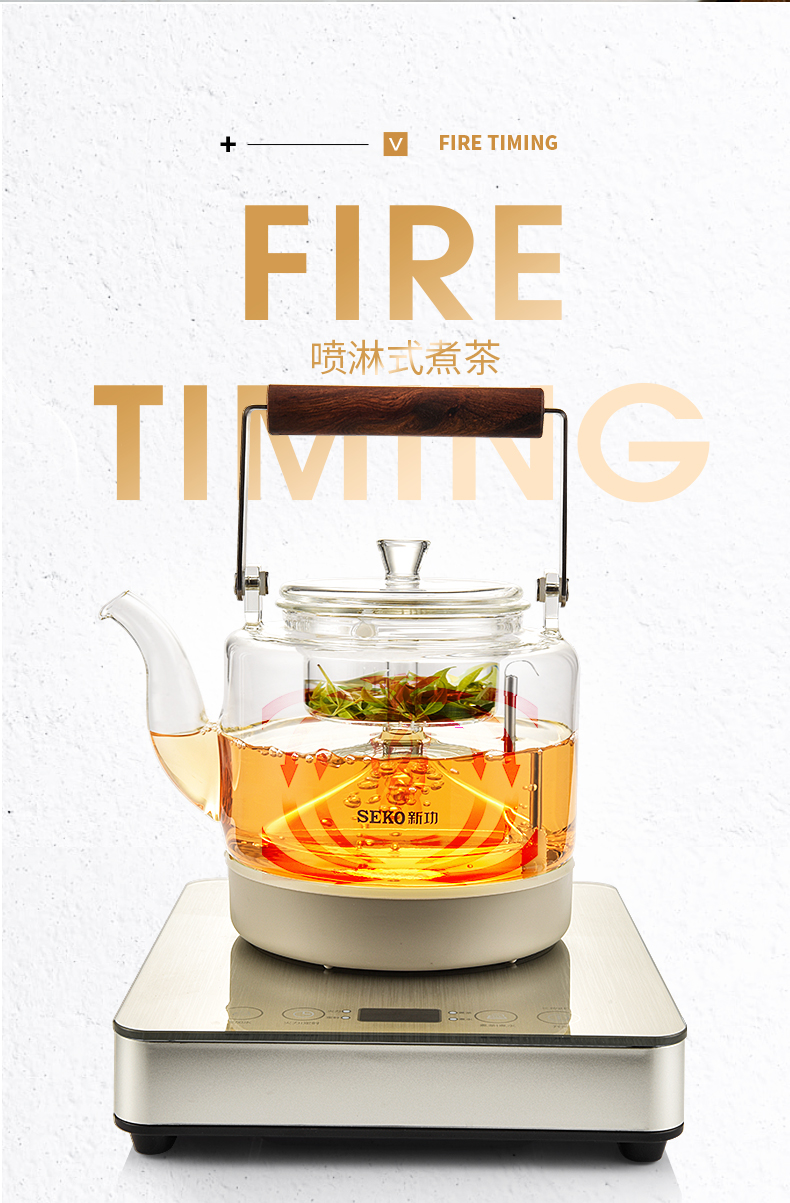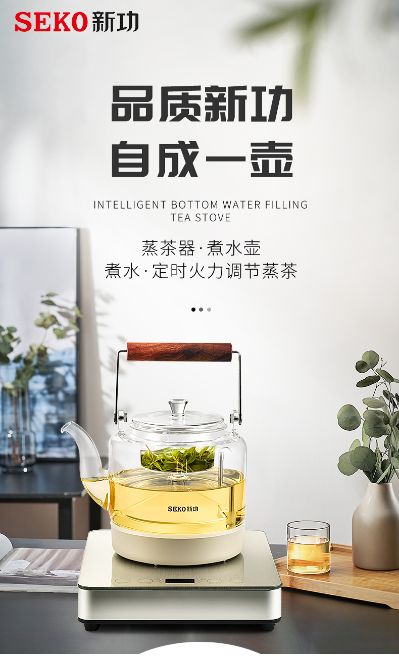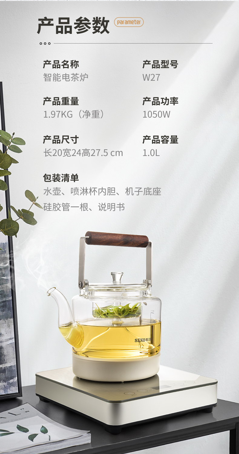 新功(SEKO) W27 自动上水电热水壶蒸汽喷淋煮茶器 香槟金 (台)
