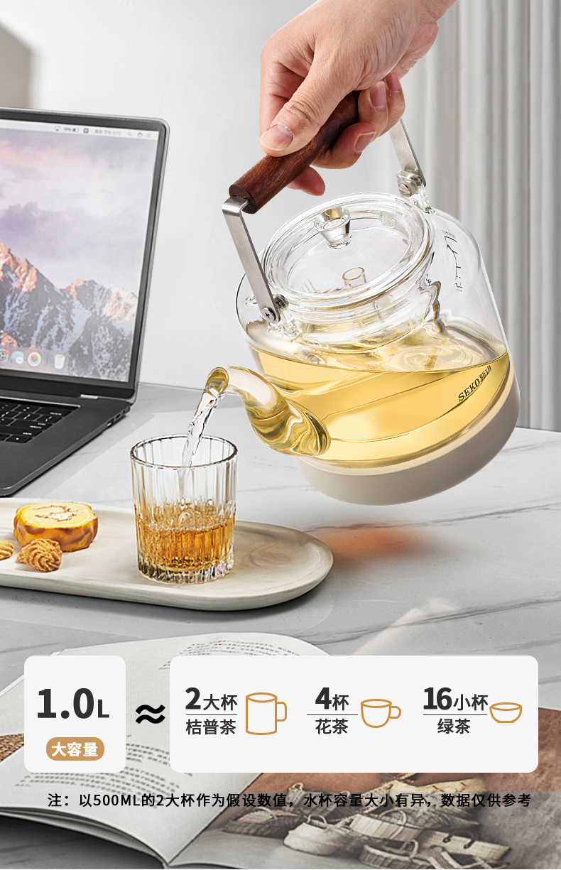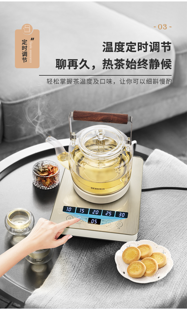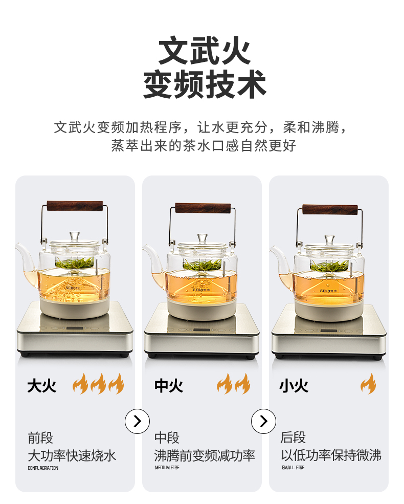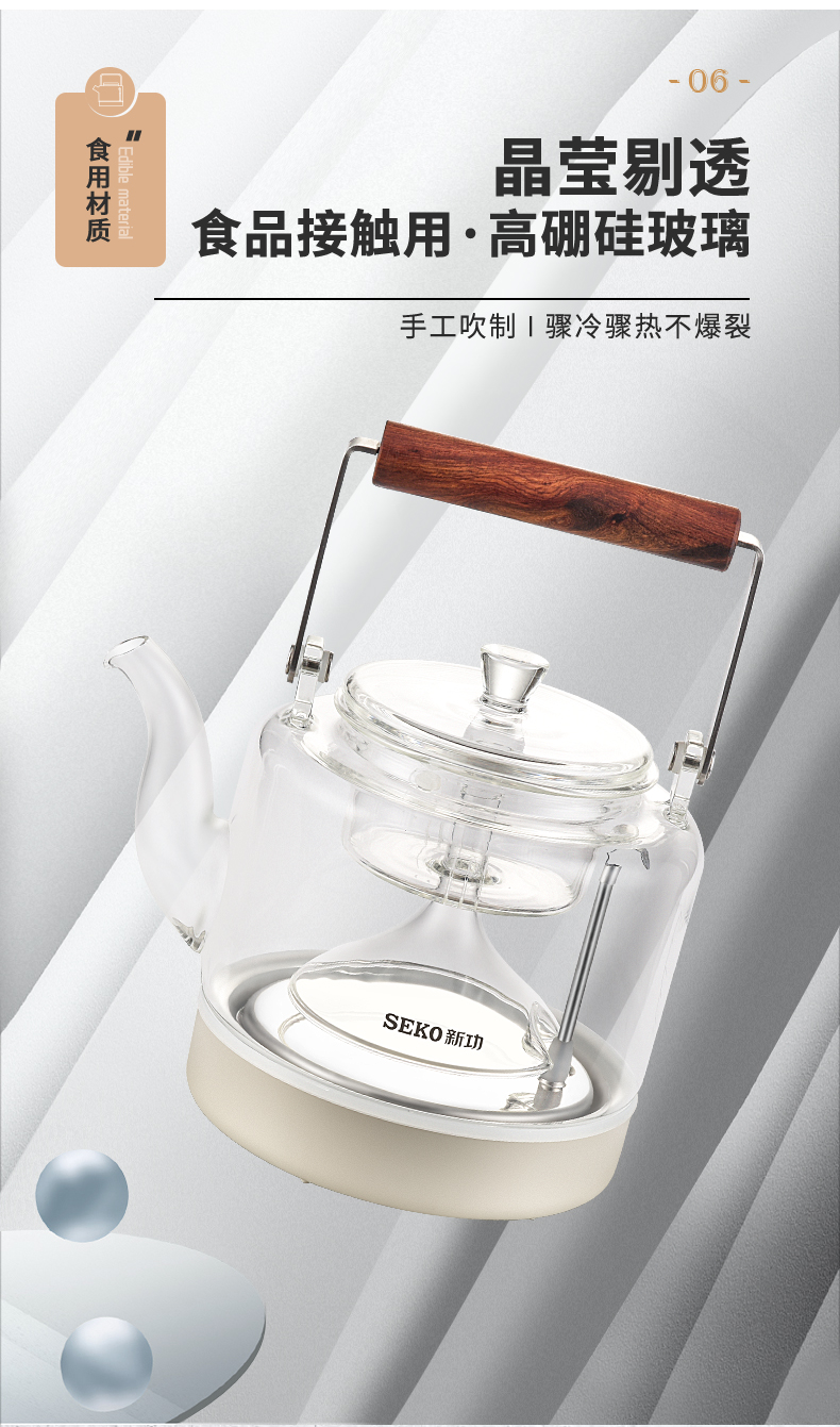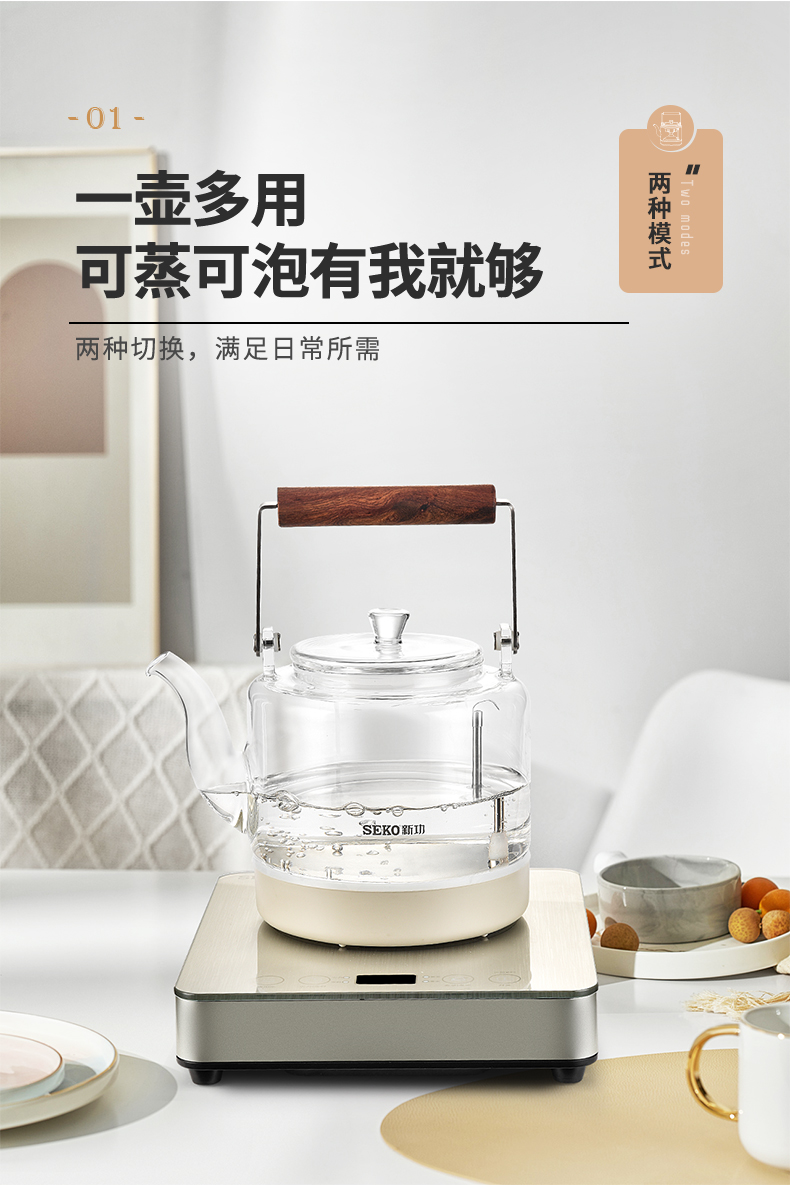 新功(SEKO) W27 自动上水电热水壶蒸汽喷淋煮茶器 香槟金 (台)