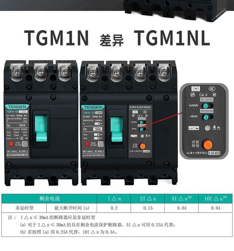 TGM1NL-125L/4300B 100A 100/300/500mA 非延时型(祥云3.0)