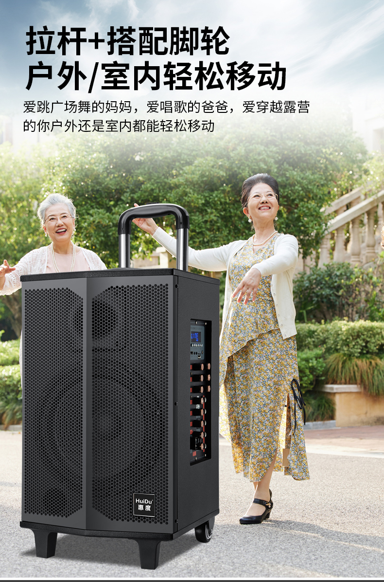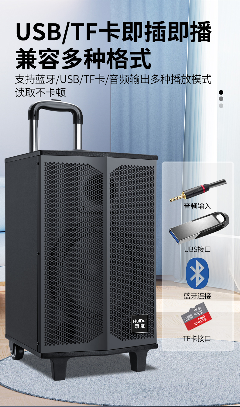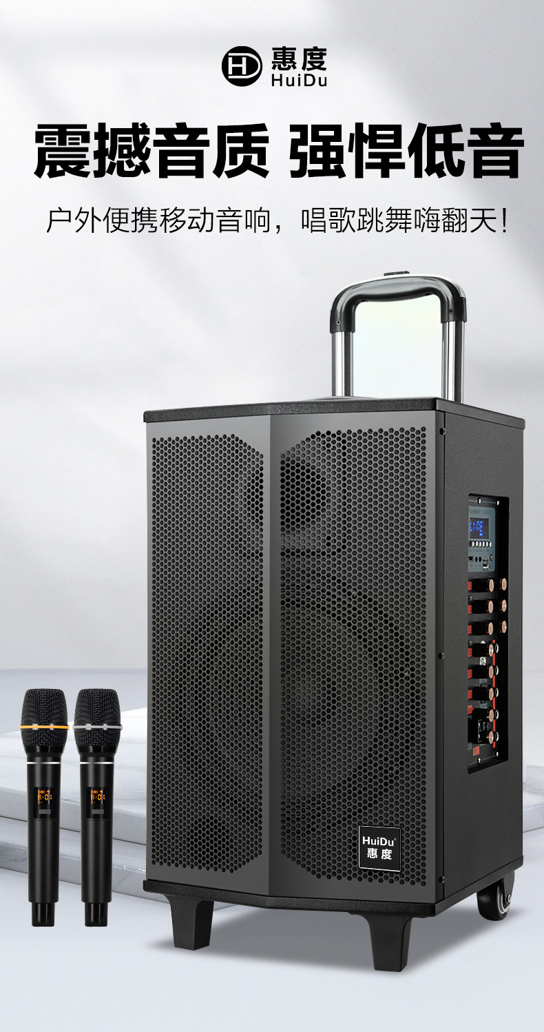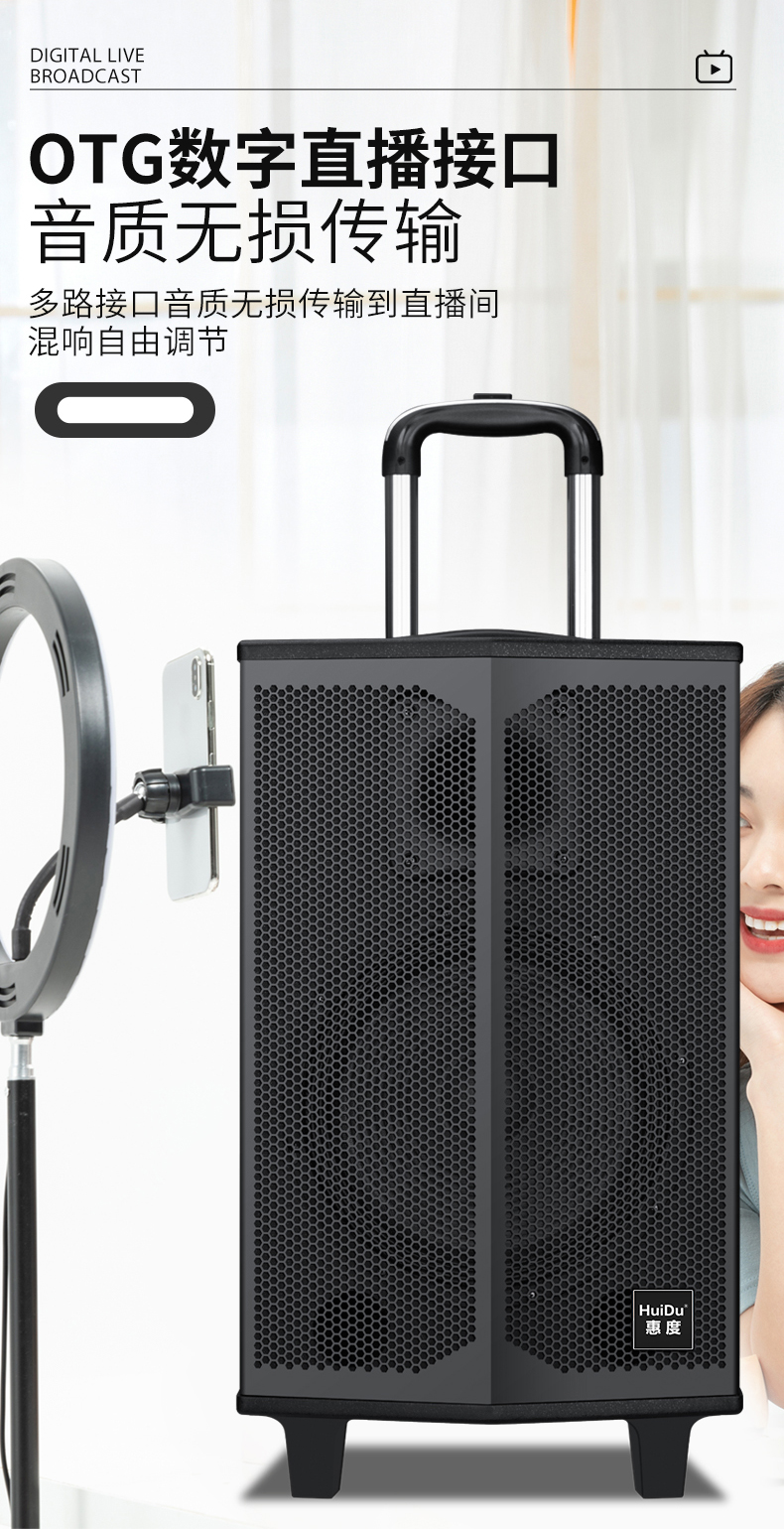 惠度(HuiDu)T-08B专业双数字直播OTG直播音箱立体环绕电视娱乐音响户外移动拉杆音箱