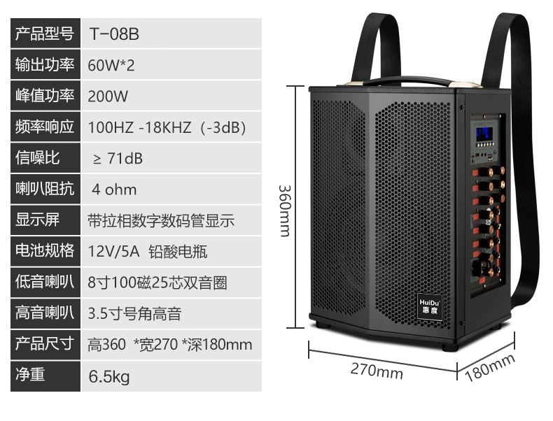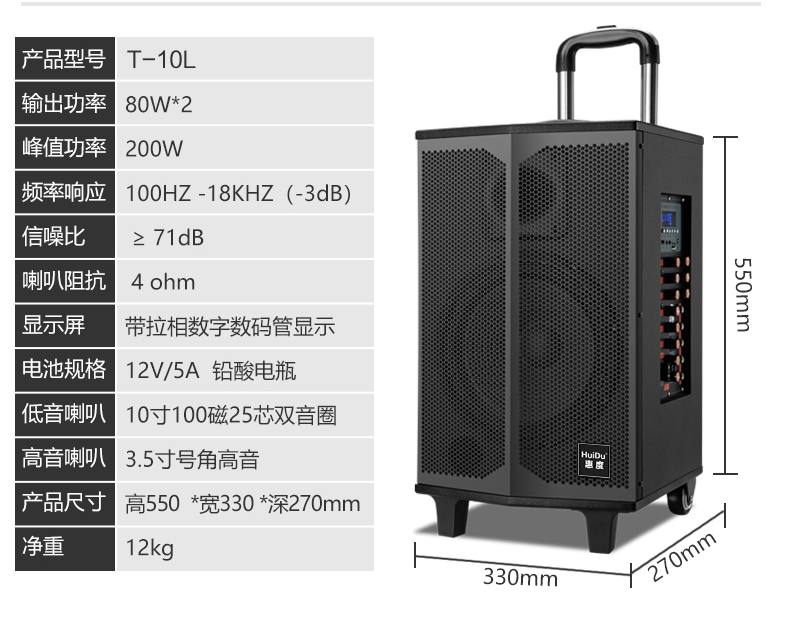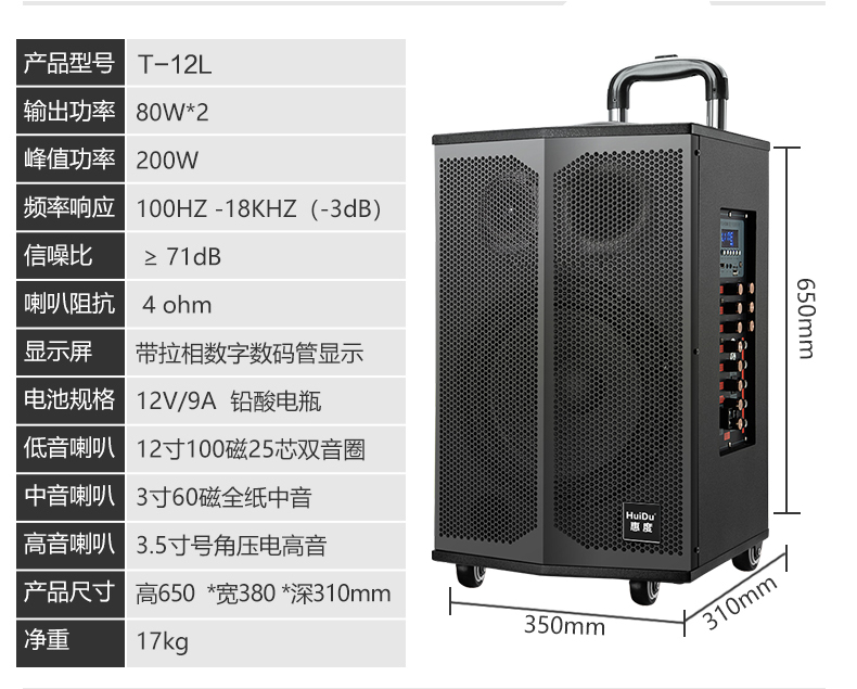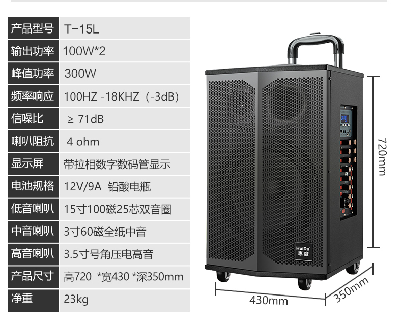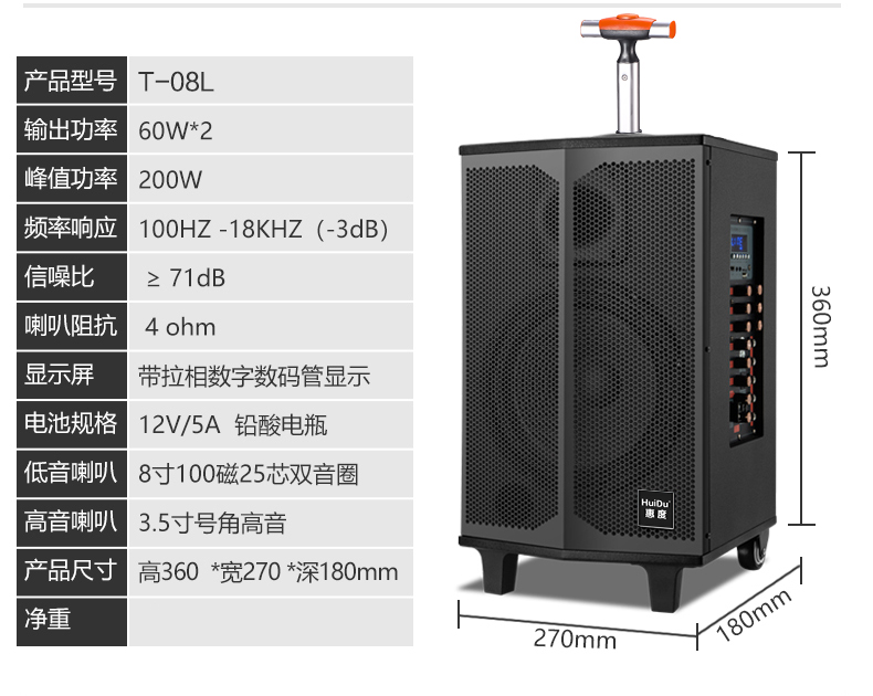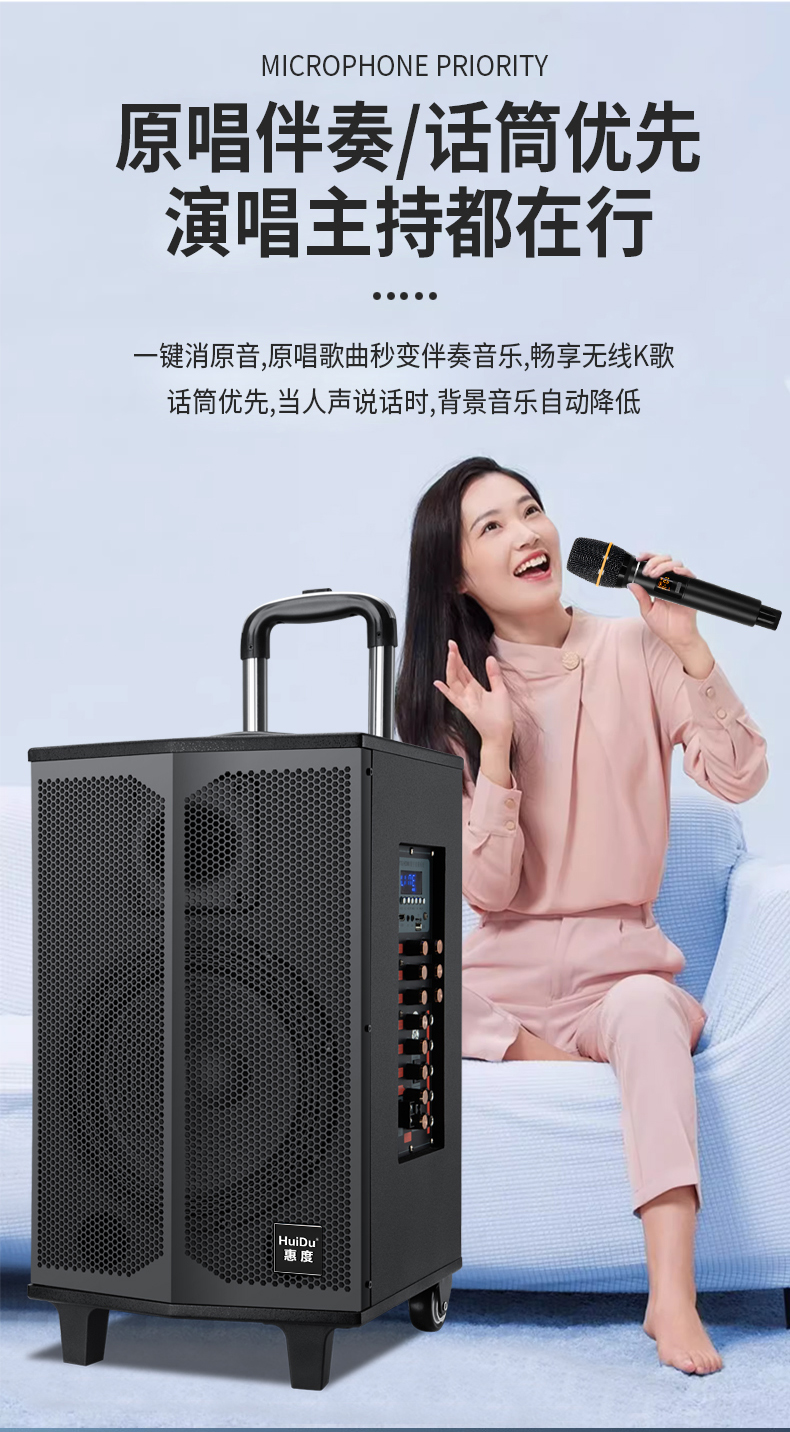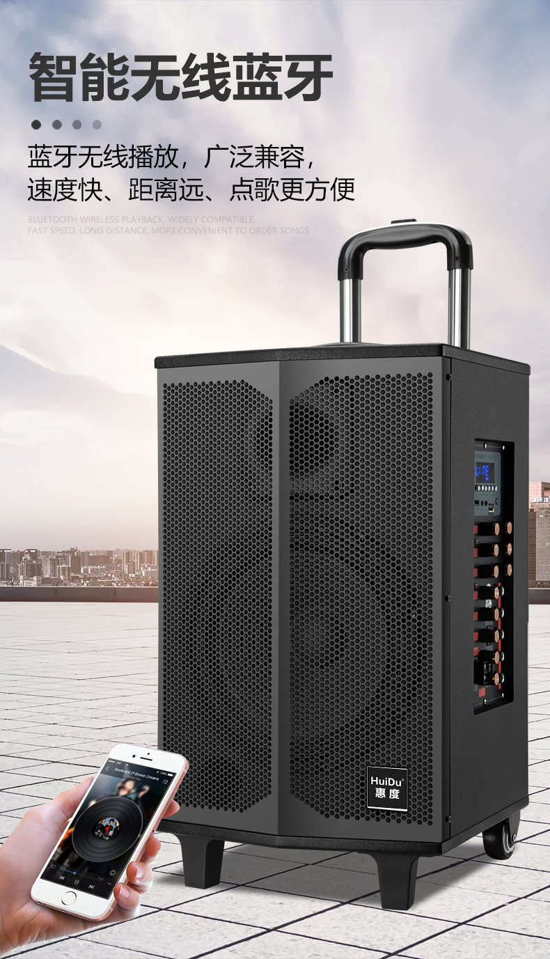 惠度(HuiDu)T-08B专业双数字直播OTG直播音箱立体环绕电视娱乐音响户外移动拉杆音箱