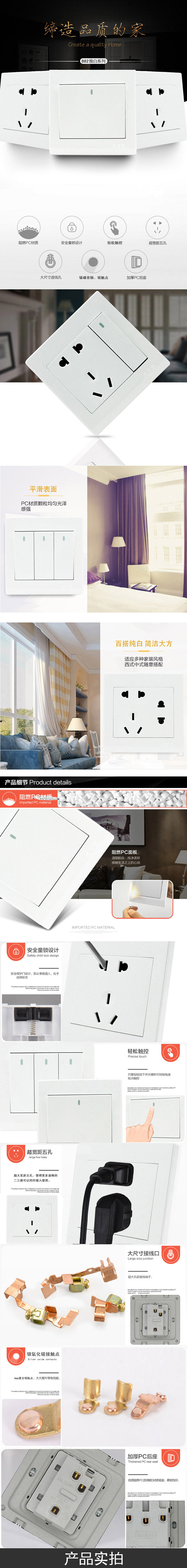 皮阿诺 KG8601 86型开关插座面板 二开双控面板 墙壁开关面板暗装家用开关 雅白色(个)