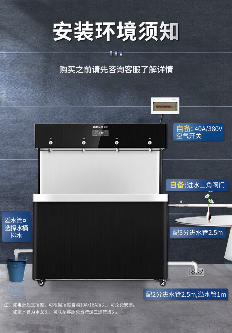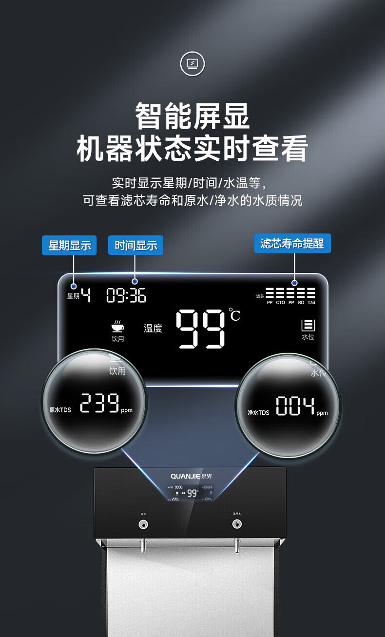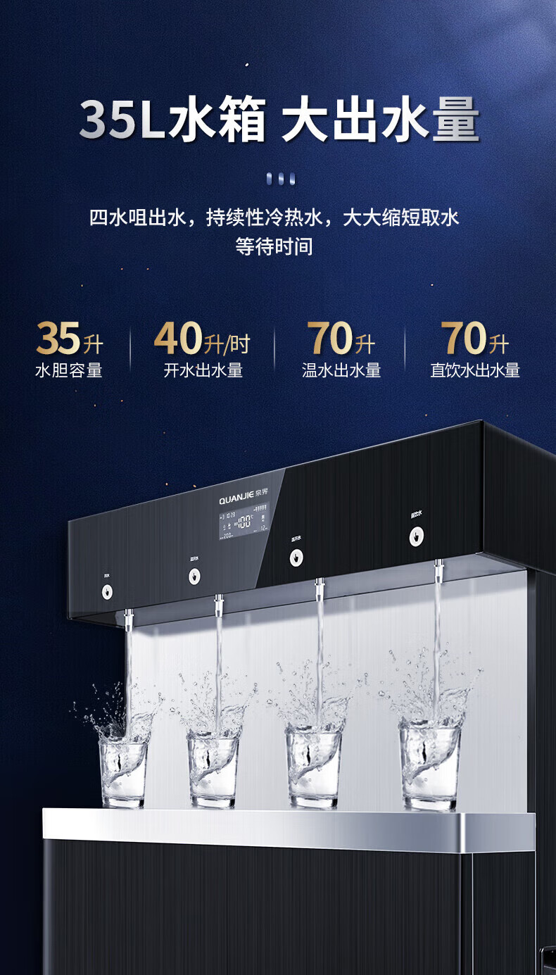泉界 QJ-J4 商用净水器 RO反渗透加热一体机 大型直饮水机 35L 一开两温一直饮