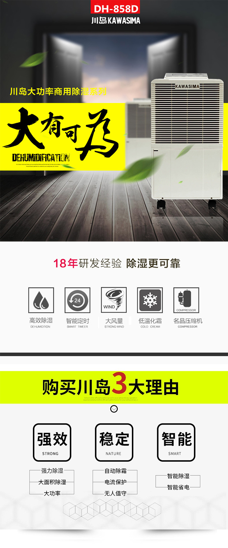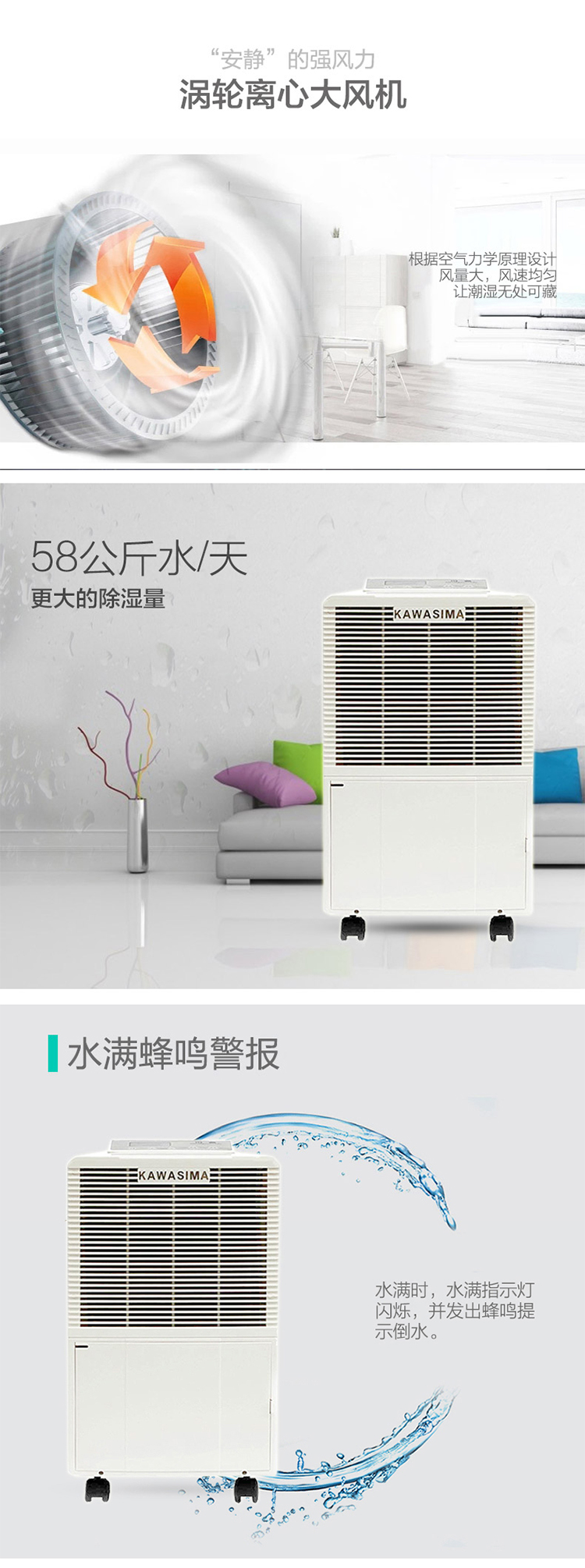 川岛(KAWASHIMA) DH-858D 除湿机 58L/天(Z) 去潮机车间厂房除湿机抽湿机