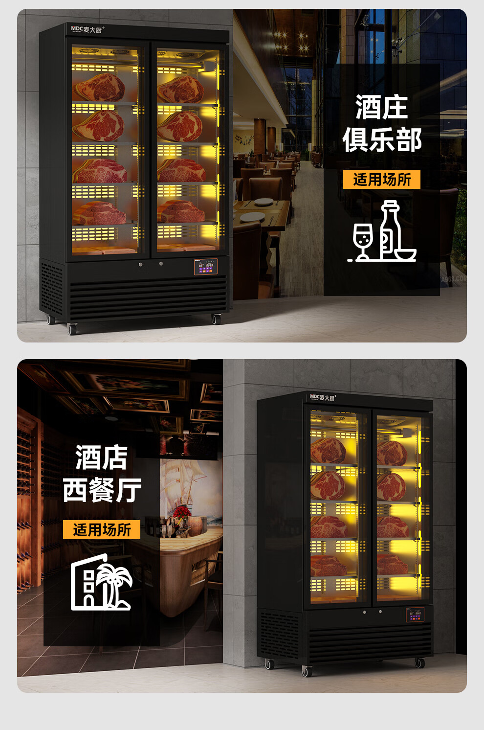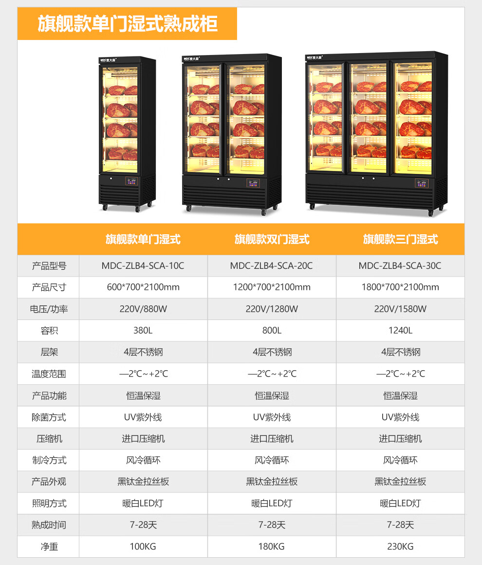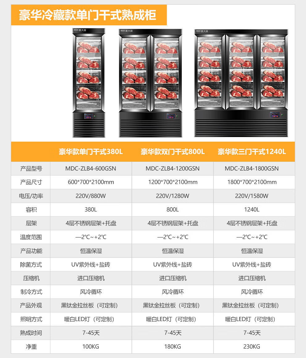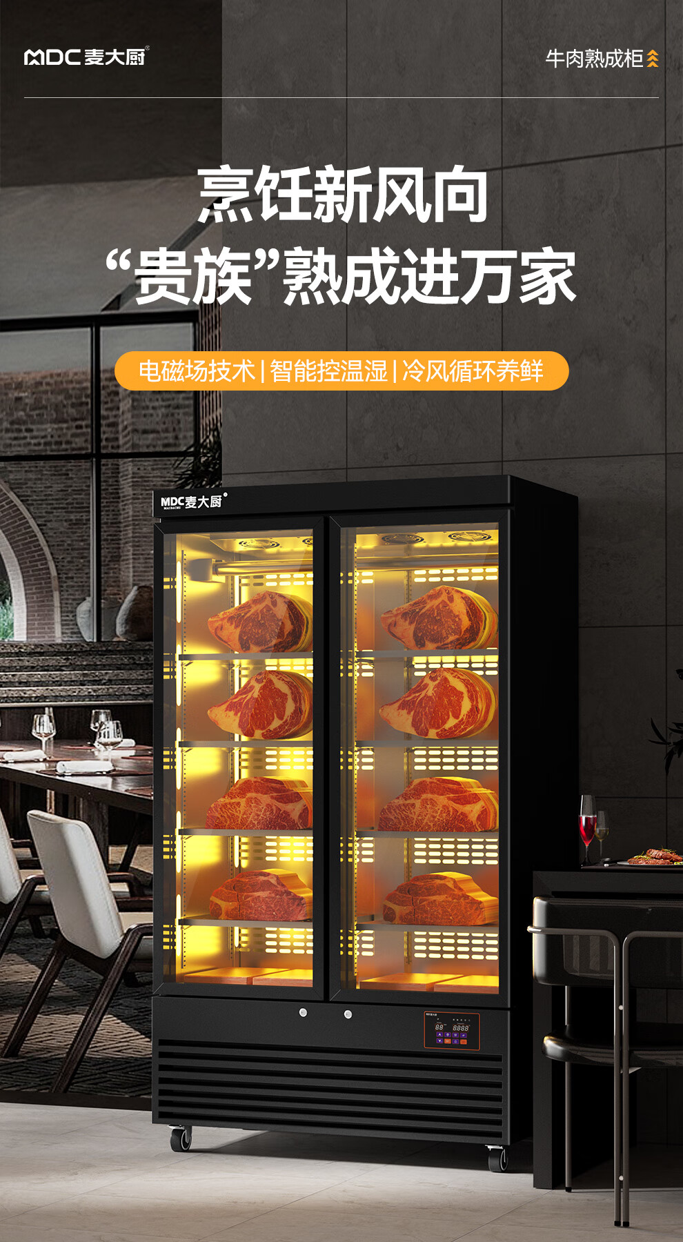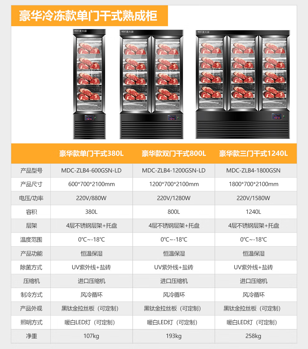 麦大厨 220V 880W旗舰款单门湿式熟成柜380L 冷冻熟成排酸柜 MDC-ZLB4-SCA-10C