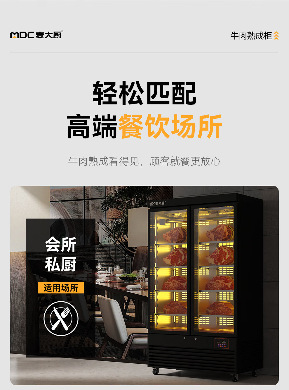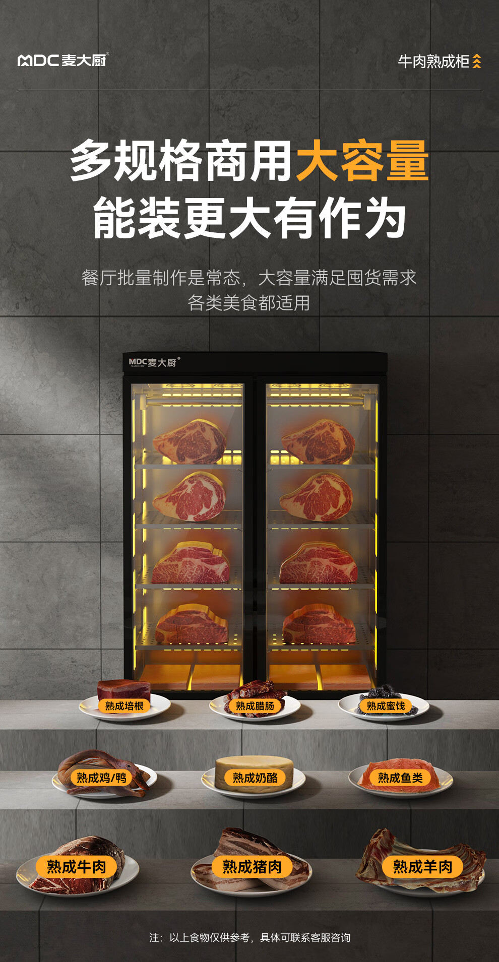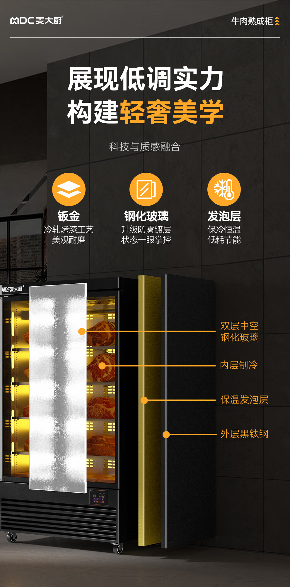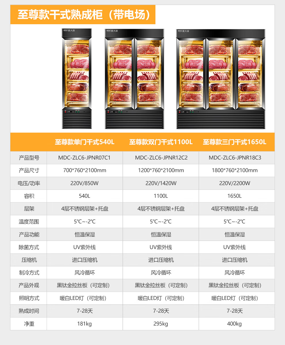 麦大厨 220V 880W旗舰款单门湿式熟成柜380L 冷冻熟成排酸柜 MDC-ZLB4-SCA-10C