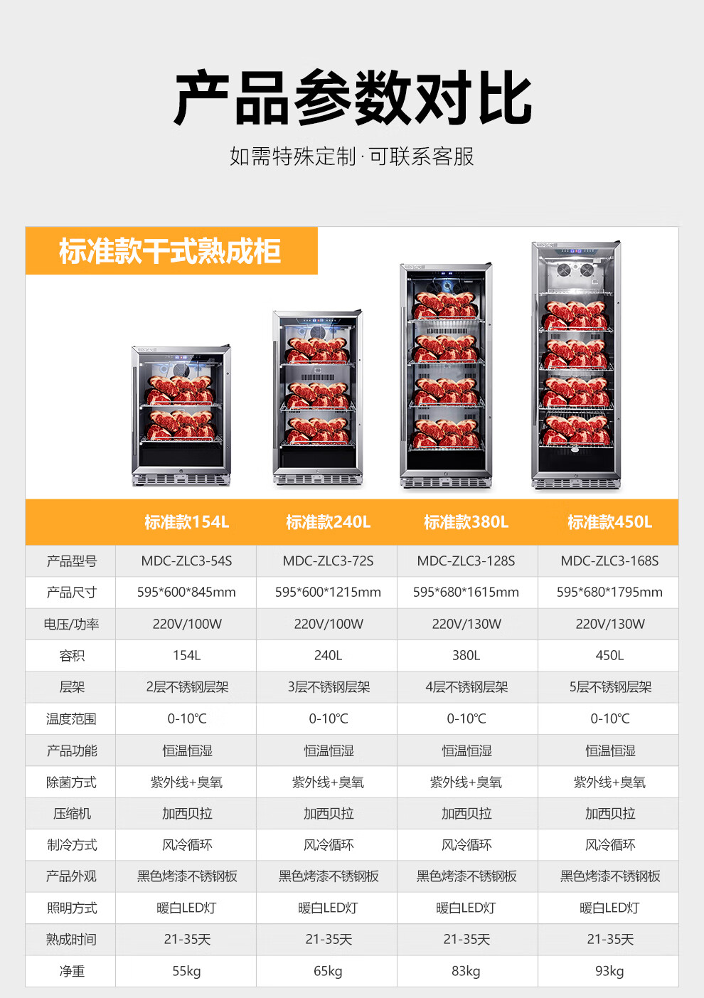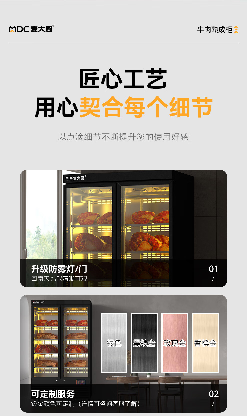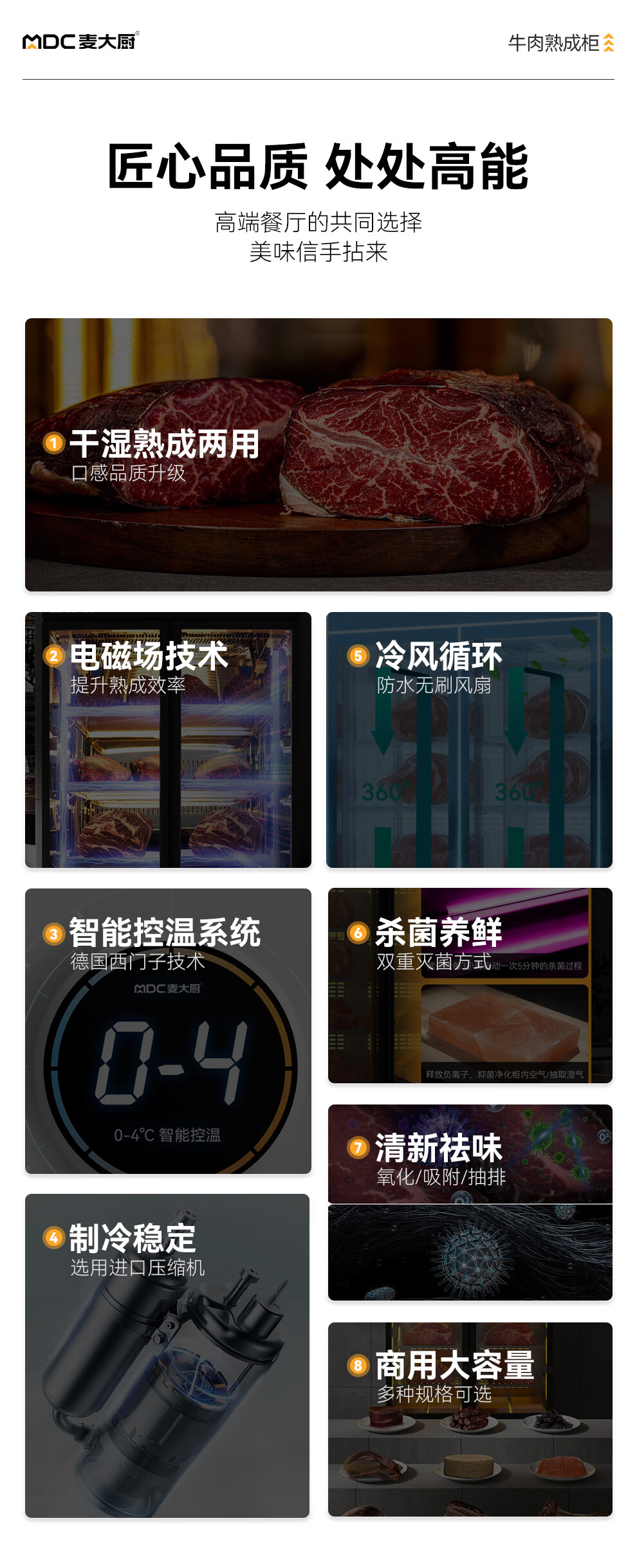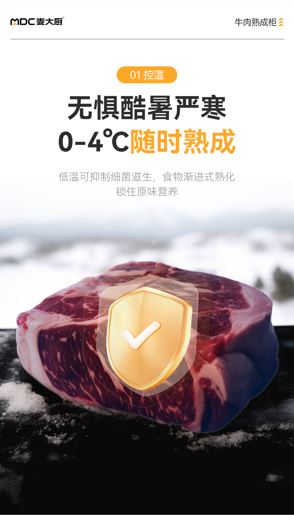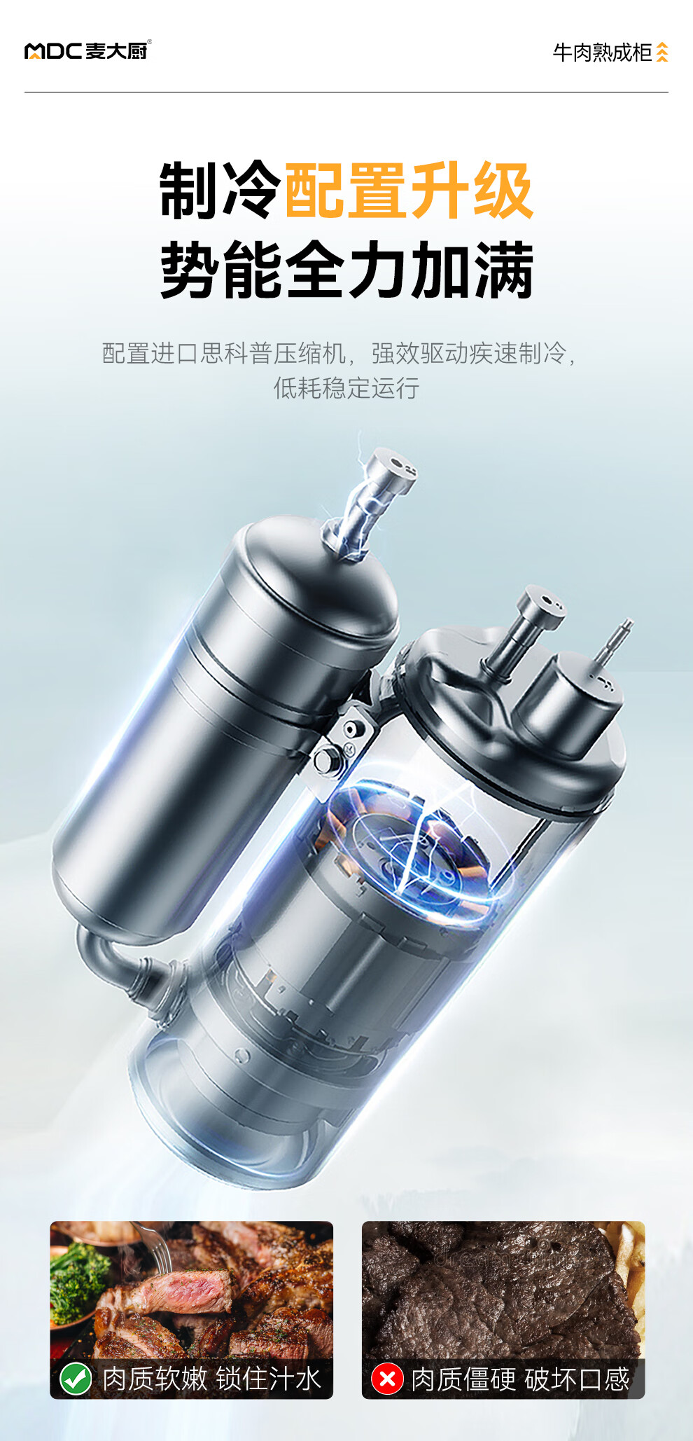 麦大厨 220V 880W旗舰款单门湿式熟成柜380L 冷冻熟成排酸柜 MDC-ZLB4-SCA-10C