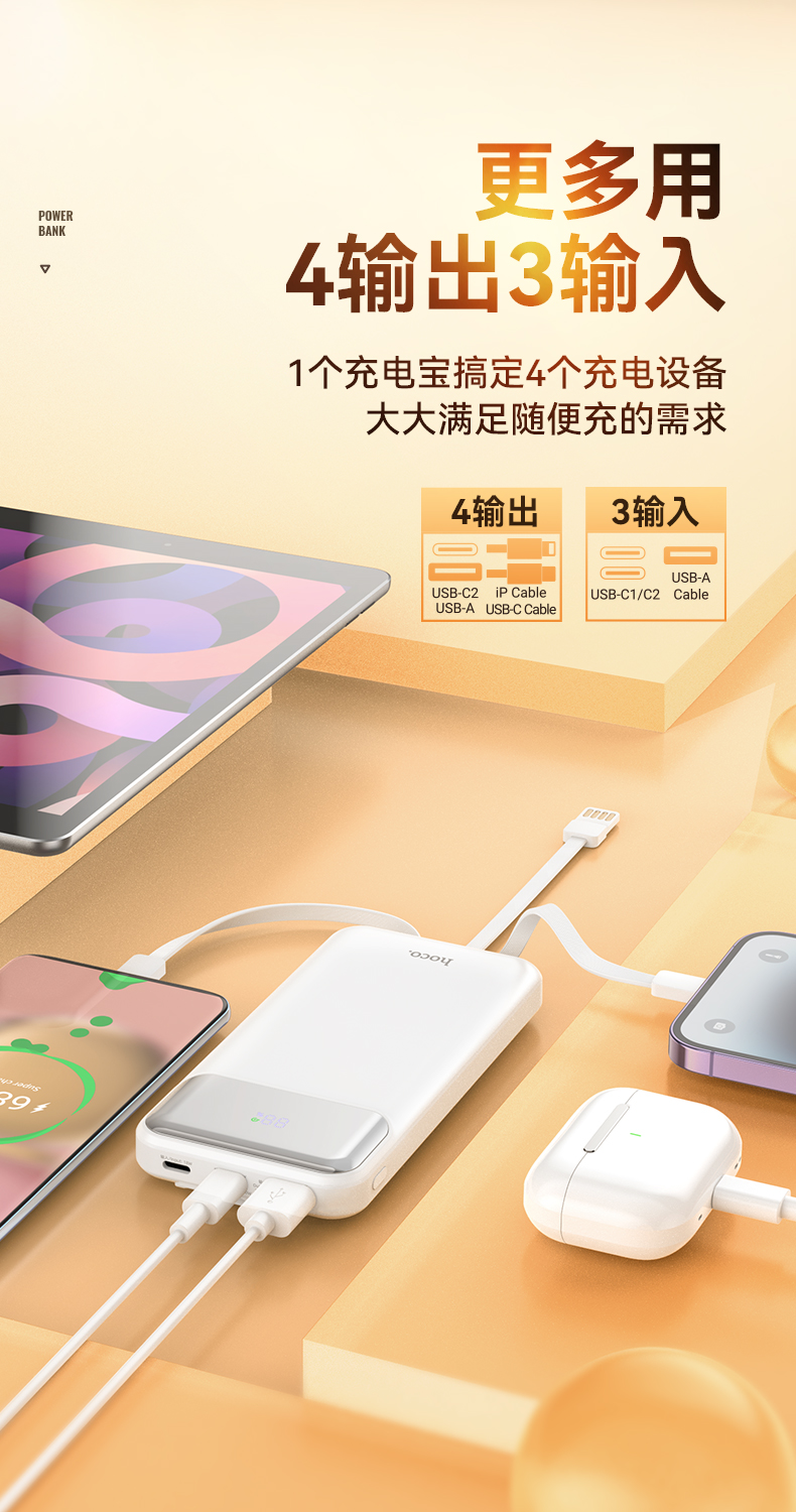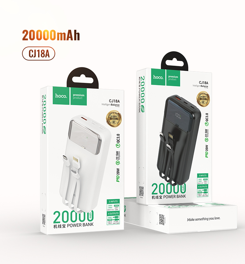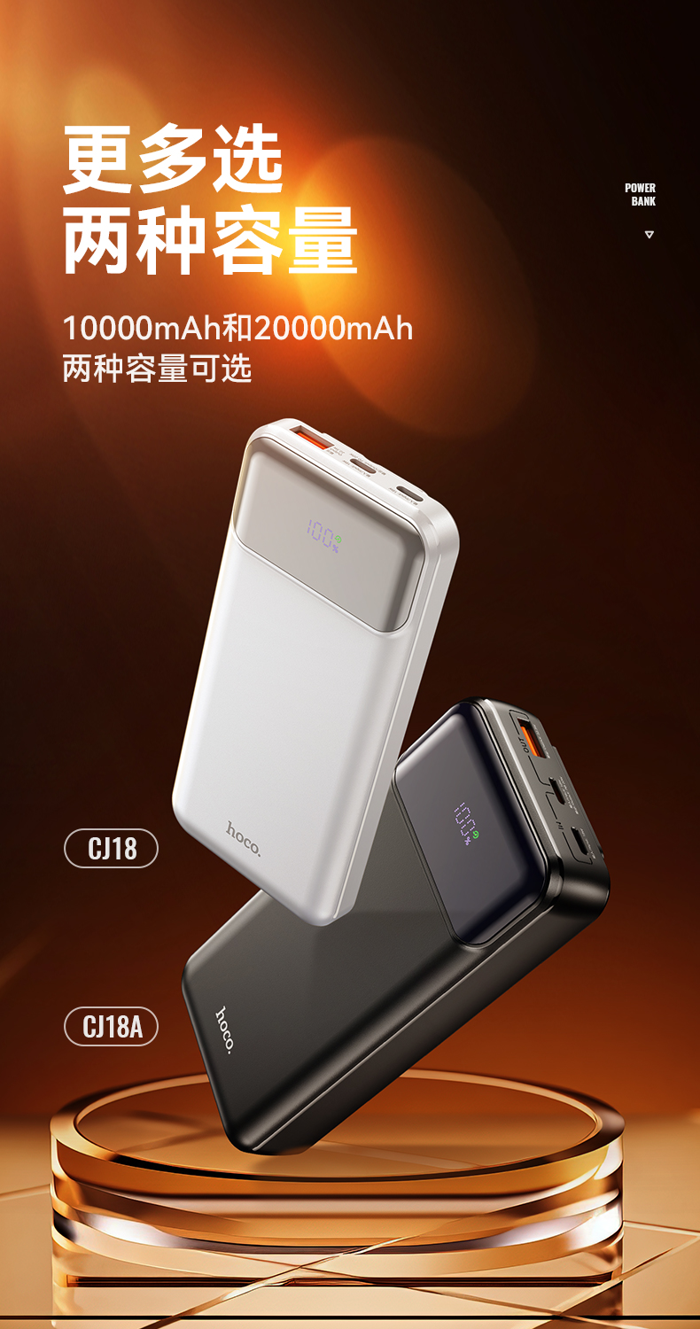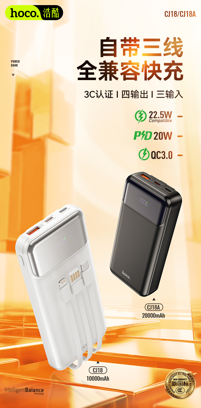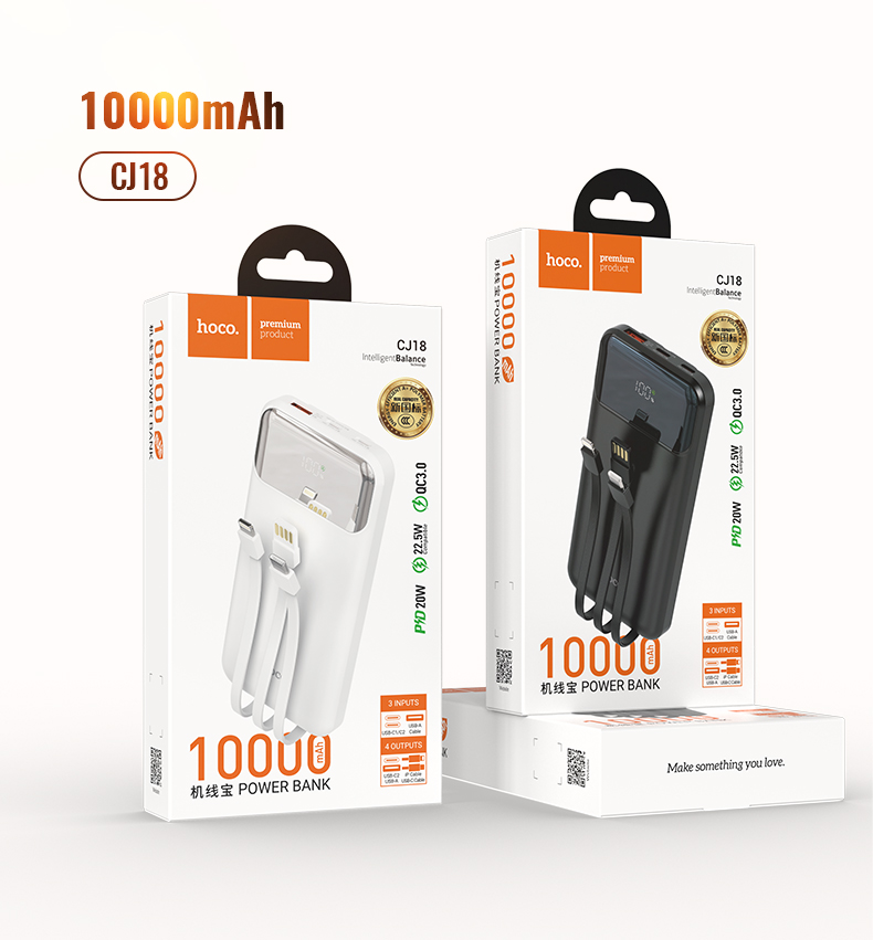HOCO. CJ18自带线PD20W+22.5W全兼容快充移动电源10000mAh黑色