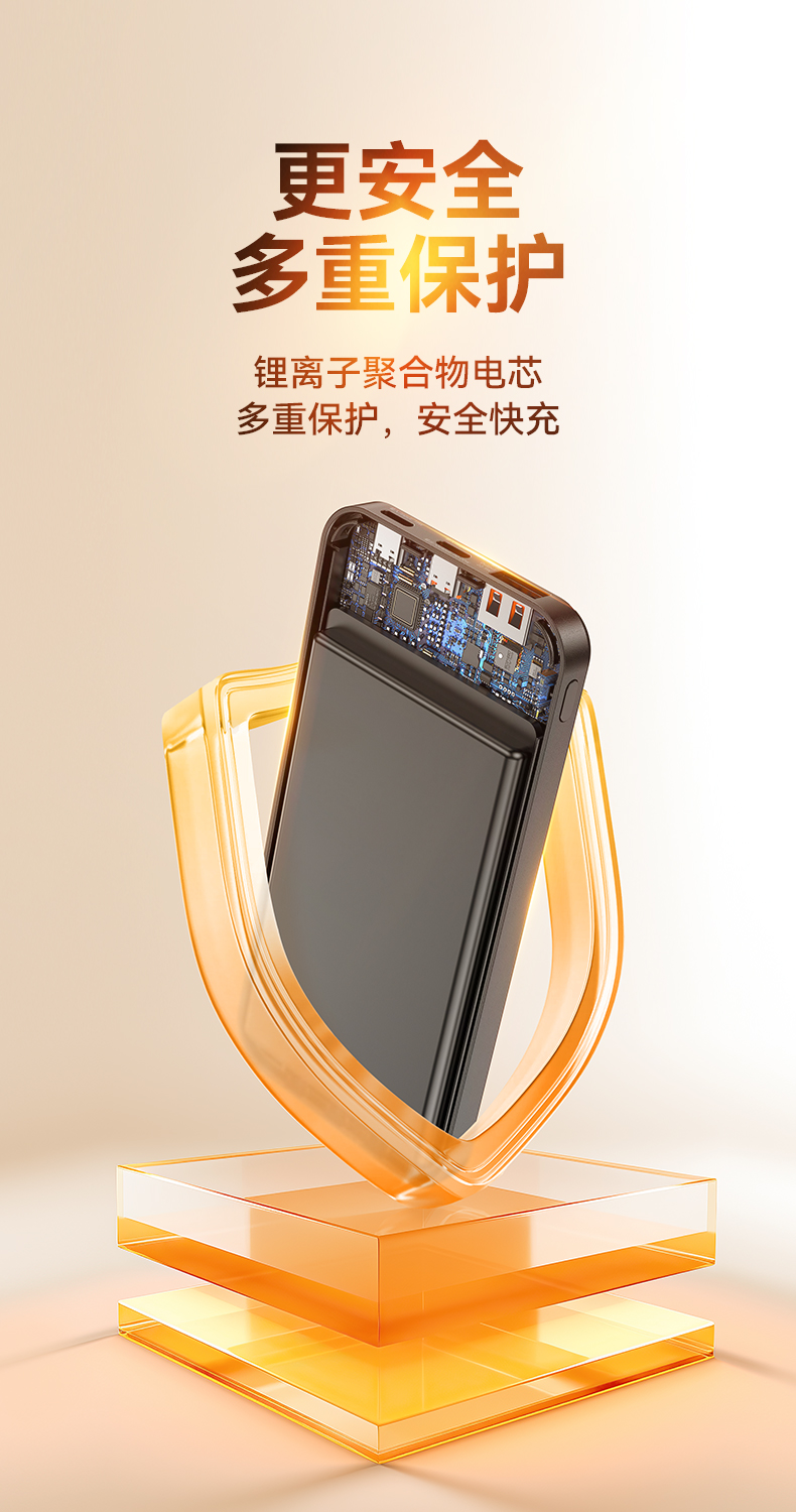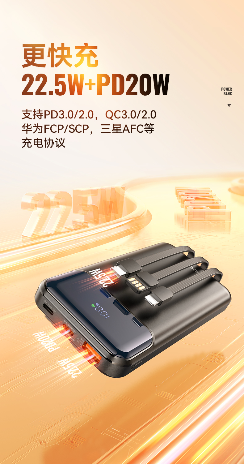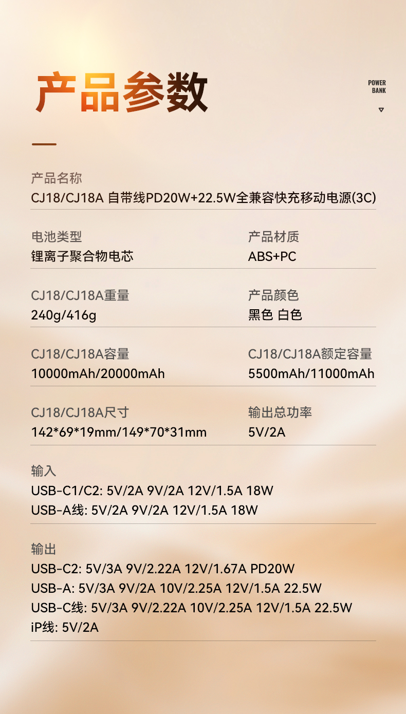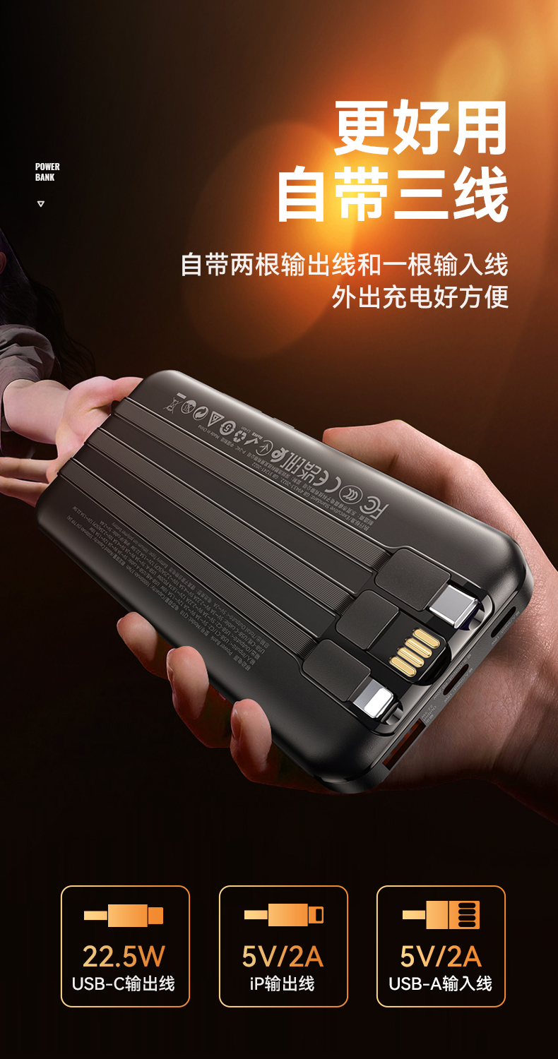 HOCO. CJ18自带线PD20W+22.5W全兼容快充移动电源10000mAh黑色