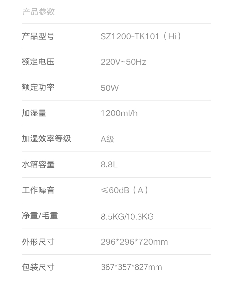 Yadu(亚都)无雾加湿器SZ1200-TK101(Hi)白色