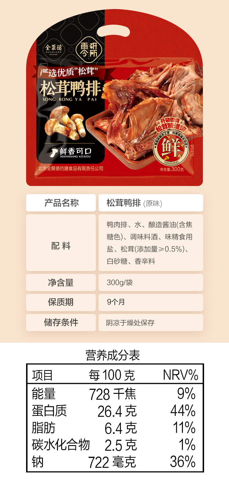 北京全聚德松茸鸭排(原味)300g*2袋_1_1