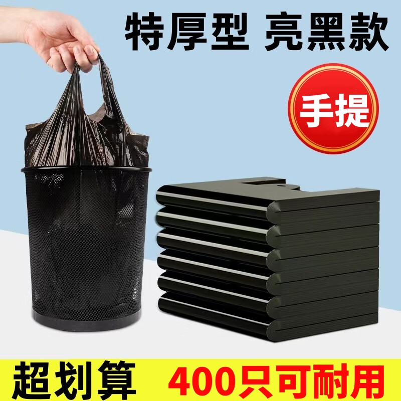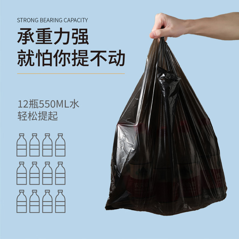 手提式垃圾袋家用加厚黑色背心款厨房特厚一次性拉圾袋大捆塑料袋_1