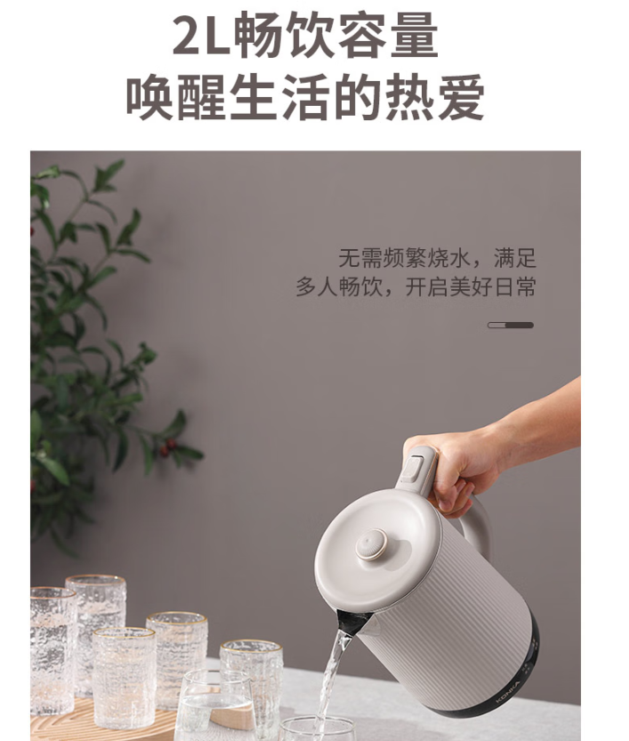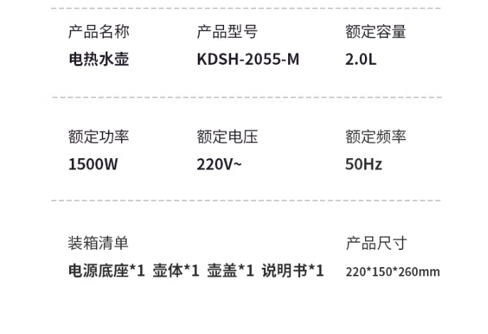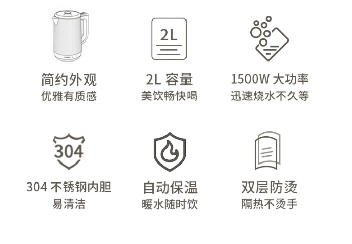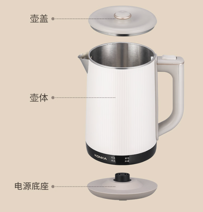 康佳(KONKA)电热水壶大容量304不锈钢内胆自动恒温烧水壶 2L KDSH-2055-M (自动保温)