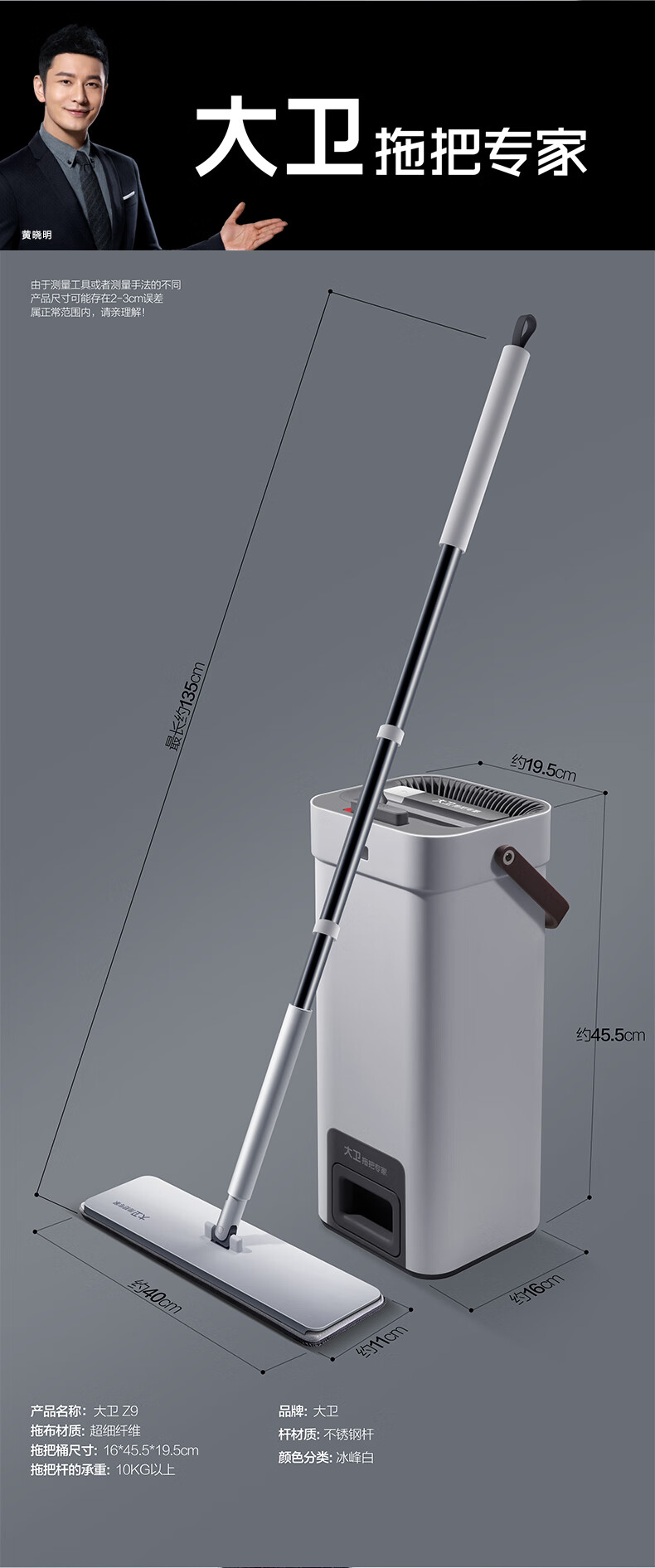 大卫Z9-3免手洗懒人拖神器2025新款带桶平板拖把家用一拖木地板地拖布净 一杆二头(单位:套)