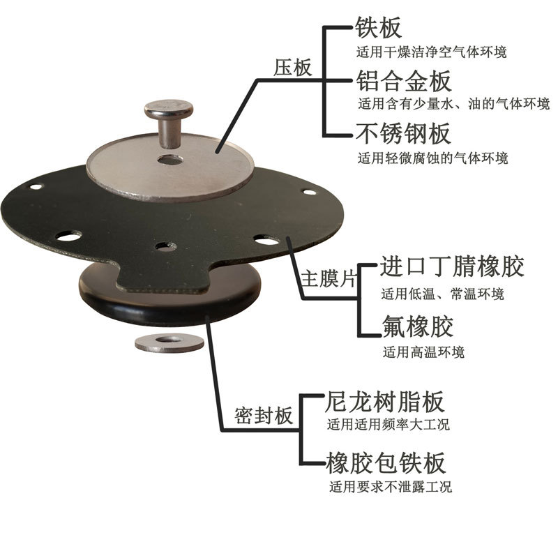 ·膜片的工作压力为0.2~0.6MPa,工作温度为-10℃~80℃。 ·与电磁脉冲阀配套使用,应用于电力、热力、钢铁、水泥等行业除尘设备中。
