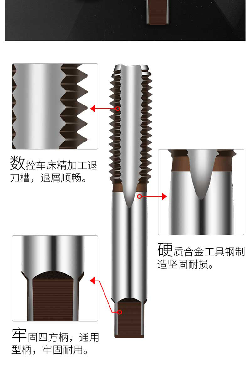 ·采用9SiCr合金工具钢制造,退刀槽数控车床精加工,退屑顺畅