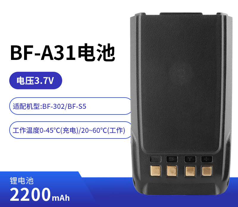 ·对讲机锂电池BF-A31,容量:2200mAh ·安全耐用,持久续航