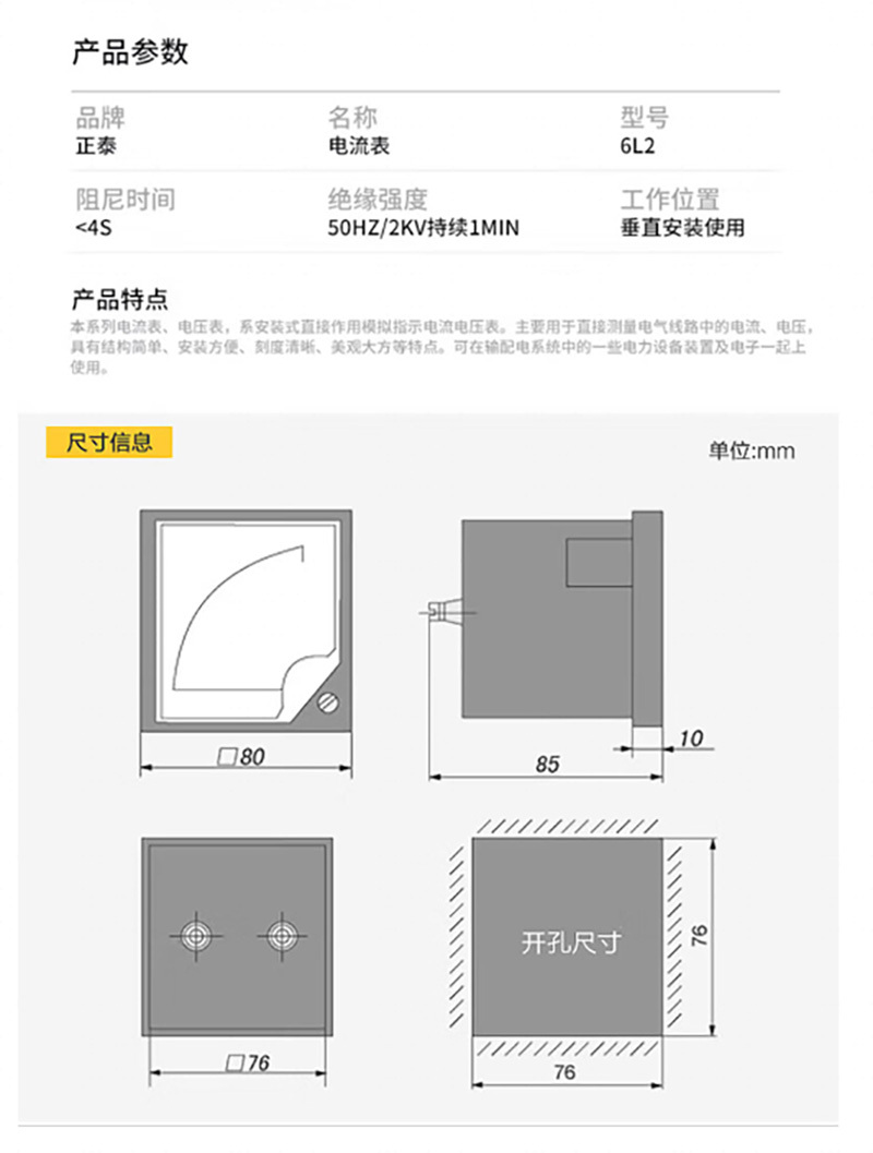 6L2-A 2500/5A 改进型.0030~2.5kA交流1.5级6932103852993CHINT/正泰6L2系列模拟指示仪表6L2系列760210100002097