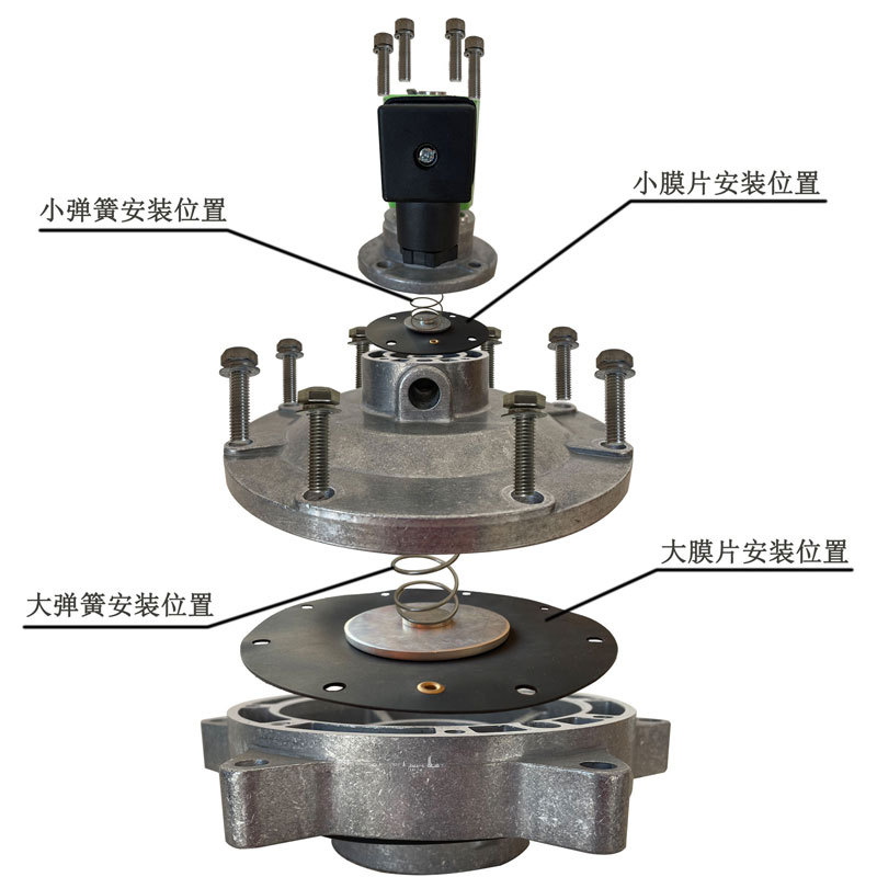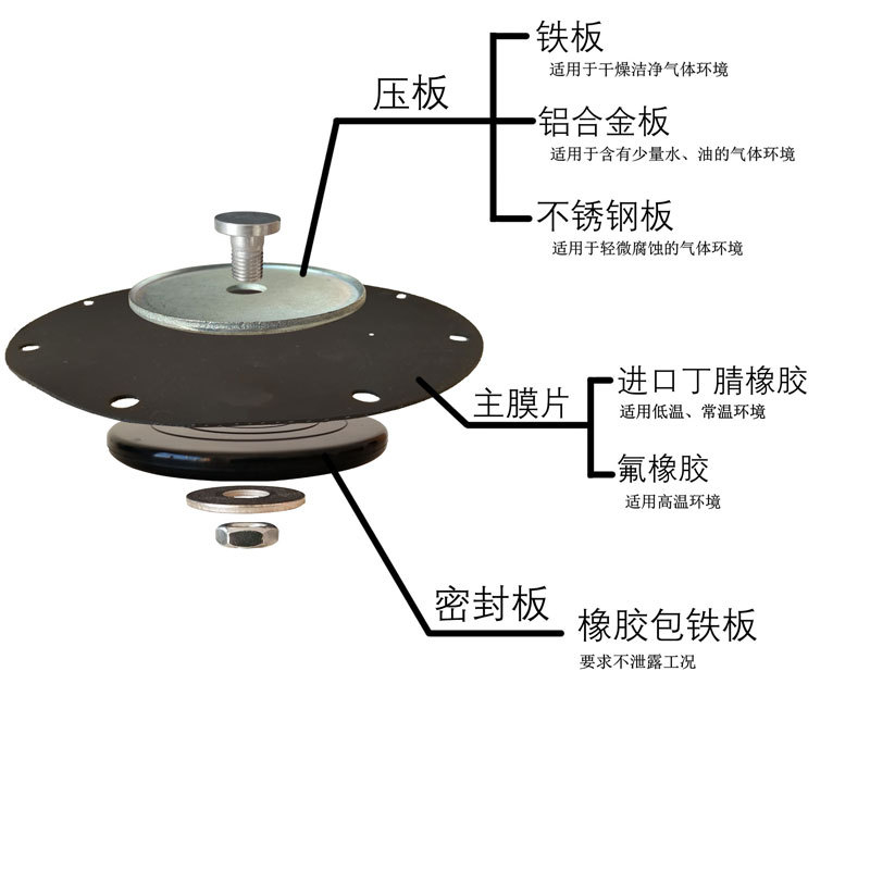 ·膜片的工作压力为0.2~0.6MPa,工作温度为-10℃~80℃。 ·与电磁脉冲阀配套使用,应用于电力、热力、钢铁、水泥等行业除尘设备中。