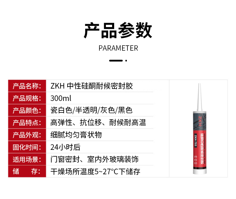 >ZKH/震坤行 玻璃胶(中性硅酮耐候密封胶) 793 半透明 300mL 1支